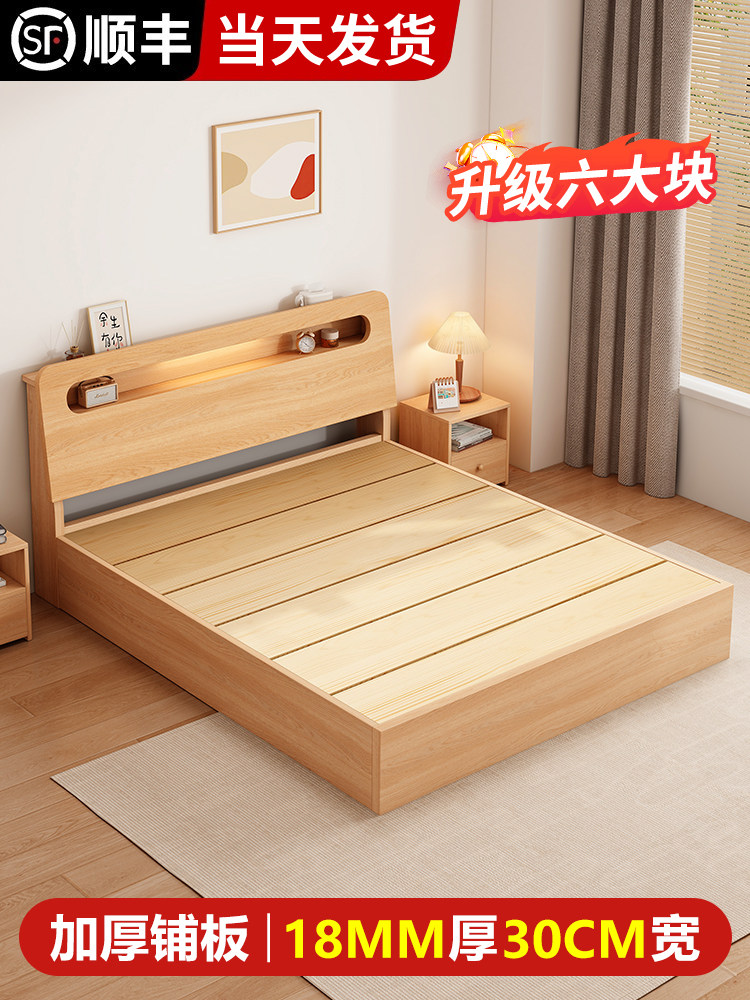 📚 1米5的床带储物实木床1米8双人床主卧家用1.5出租房落地榻榻米1.2