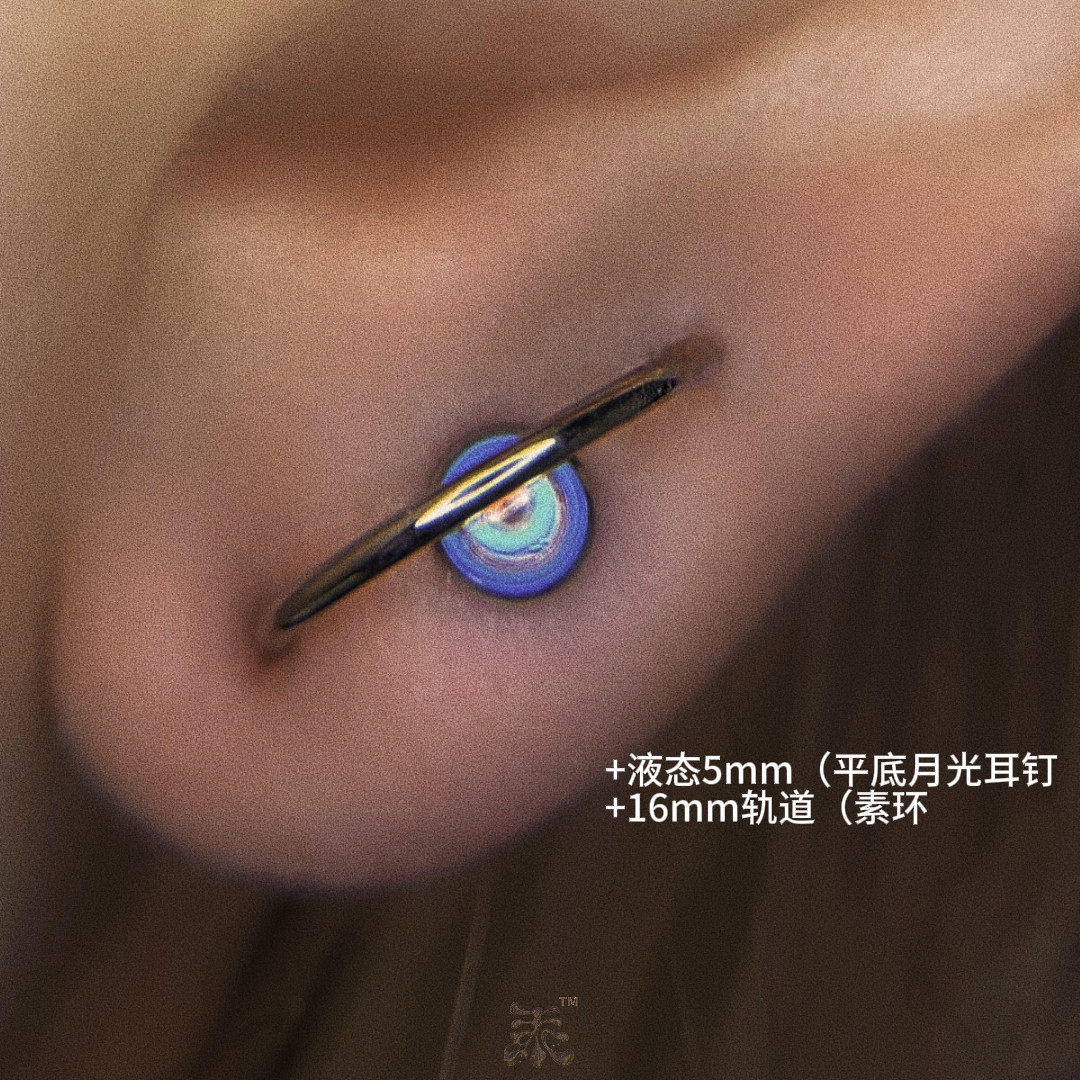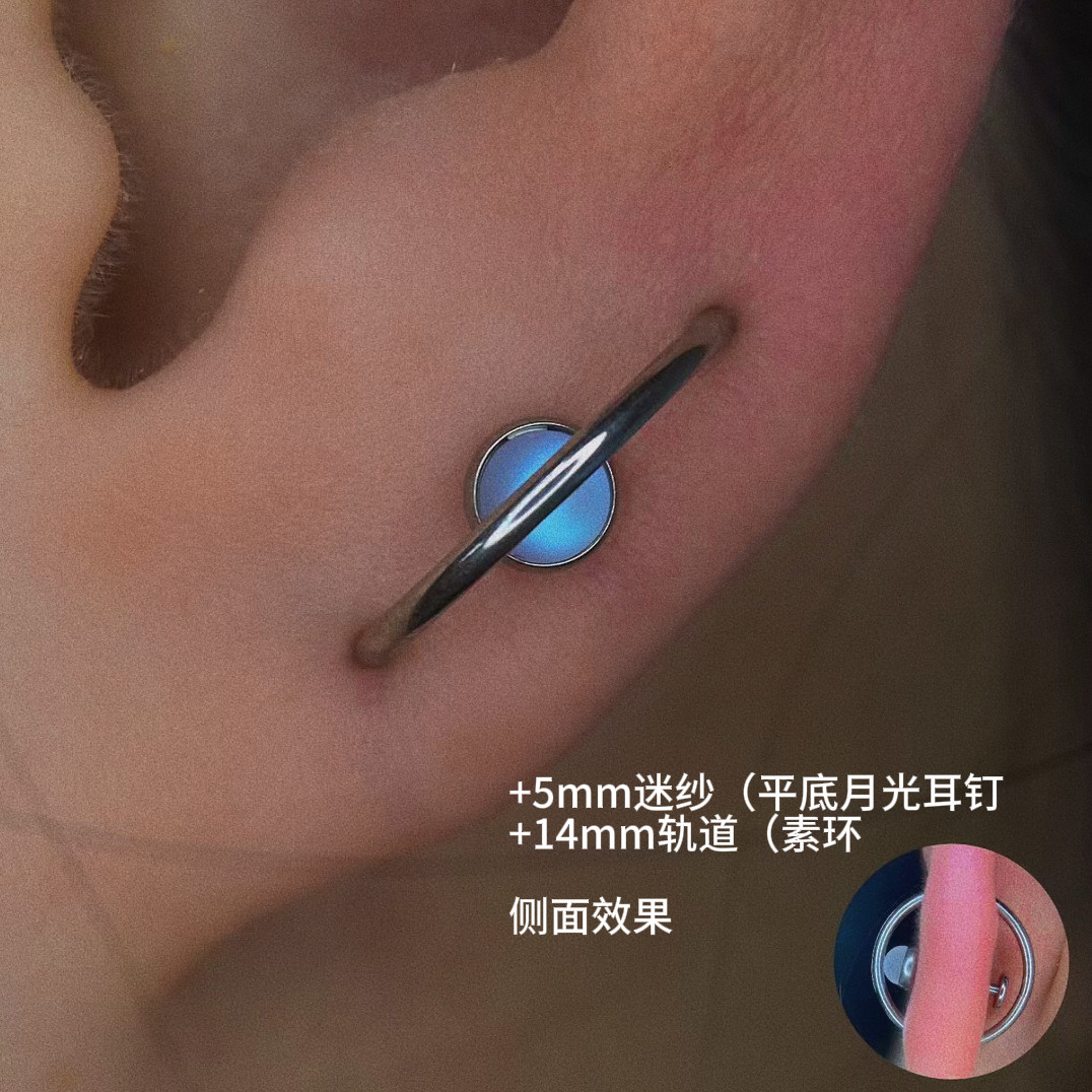 📚 月光蛋白星球轨道平底包边耳钉 内螺纹防过敏f136钛合金 舌钉埋钉
