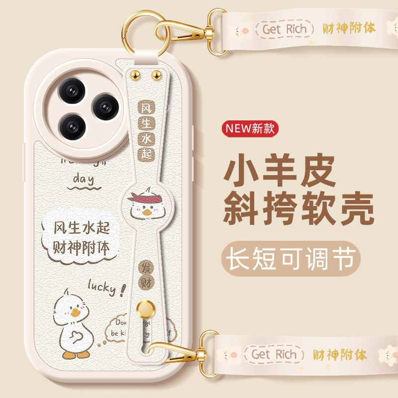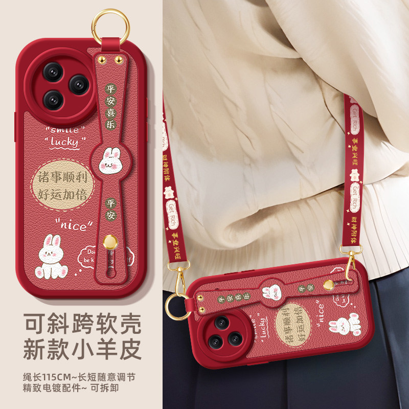 📚 小兔子适用红米k80手机壳红米k80pro保护套新款redmi K80腕带斜挎挂绳秋冬女款全包防摔小羊皮卡通高级外壳