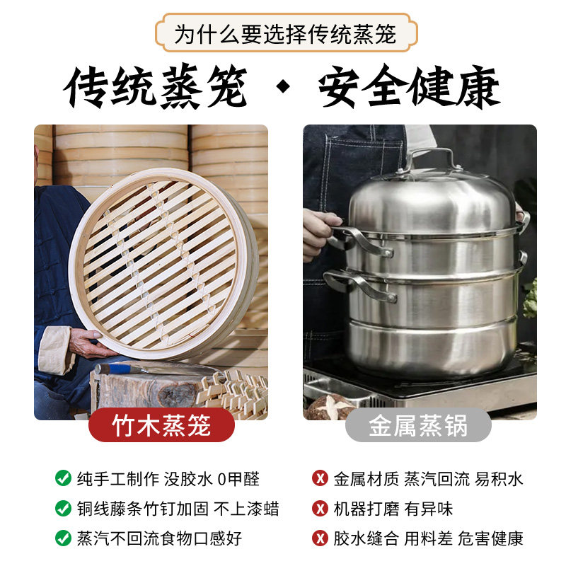 📚 蒸皇商用大号竹蒸笼加厚加深小笼包家用竹制蒸笼馒头包子专用蒸笼