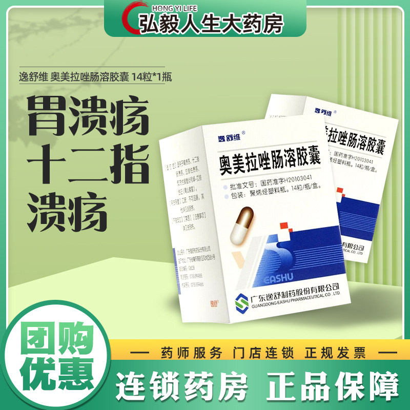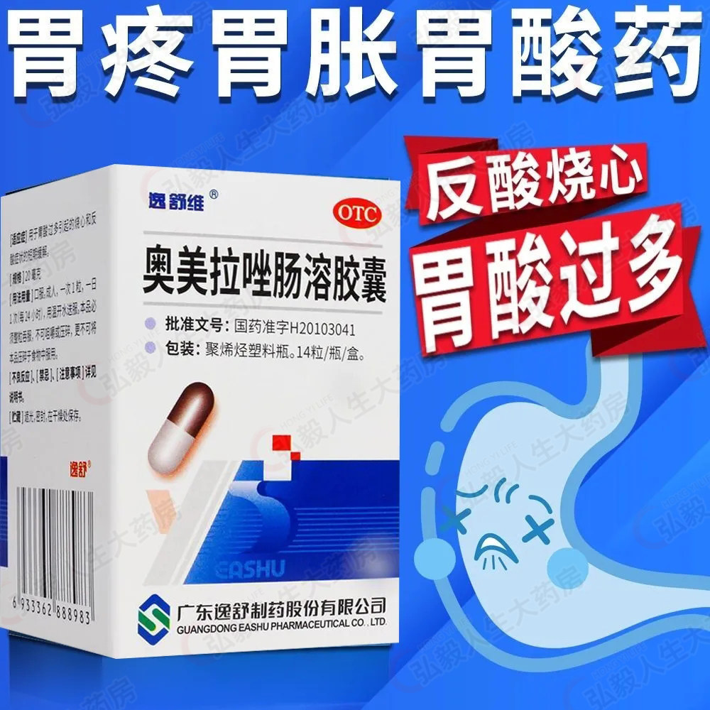 📚 逸舒维奥美拉唑肠溶胶囊14粒 胃溃疡 胃酸过多 烧心反酸症状缓解