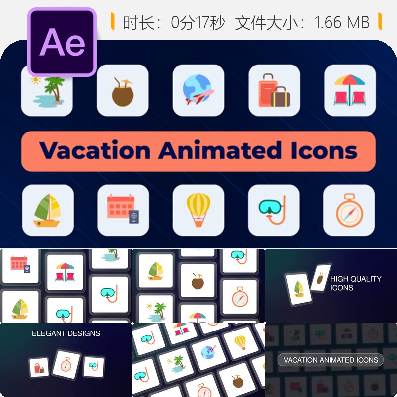 📚 假期旅行图标AE模板动画效果自然元素动态设计飞机轮船热气球