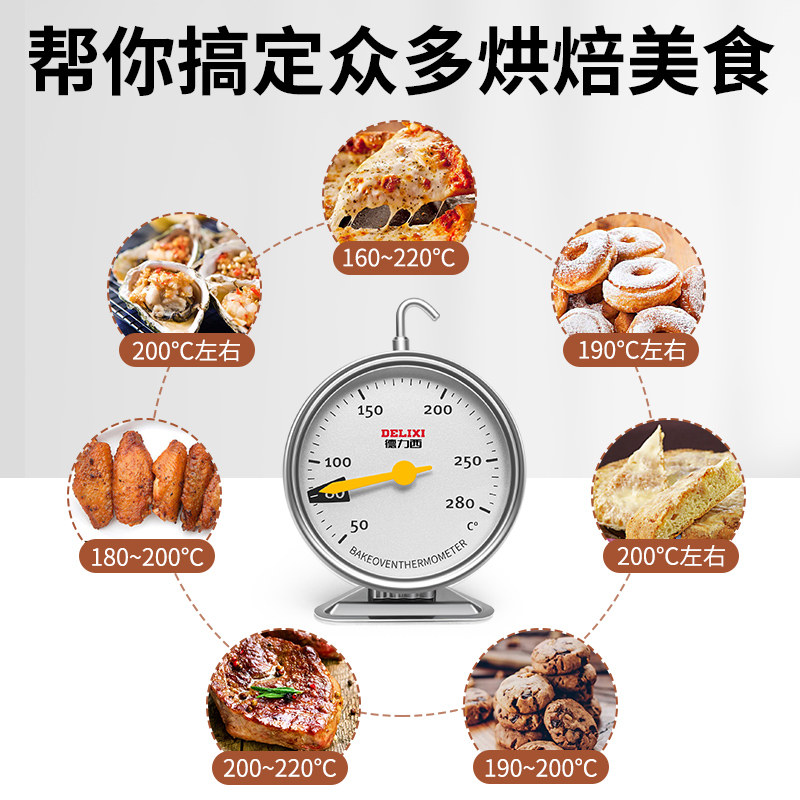 📚 德力西不锈钢测烤箱温度计烘培用精准内置耐高温湿度厨房专用测温