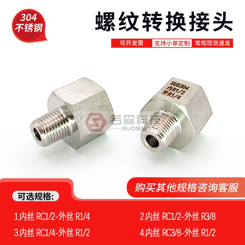 📚 0089.英制 内丝ZG PT Rc1/2转 外丝R1/4 变径 不锈钢螺纹转换接头