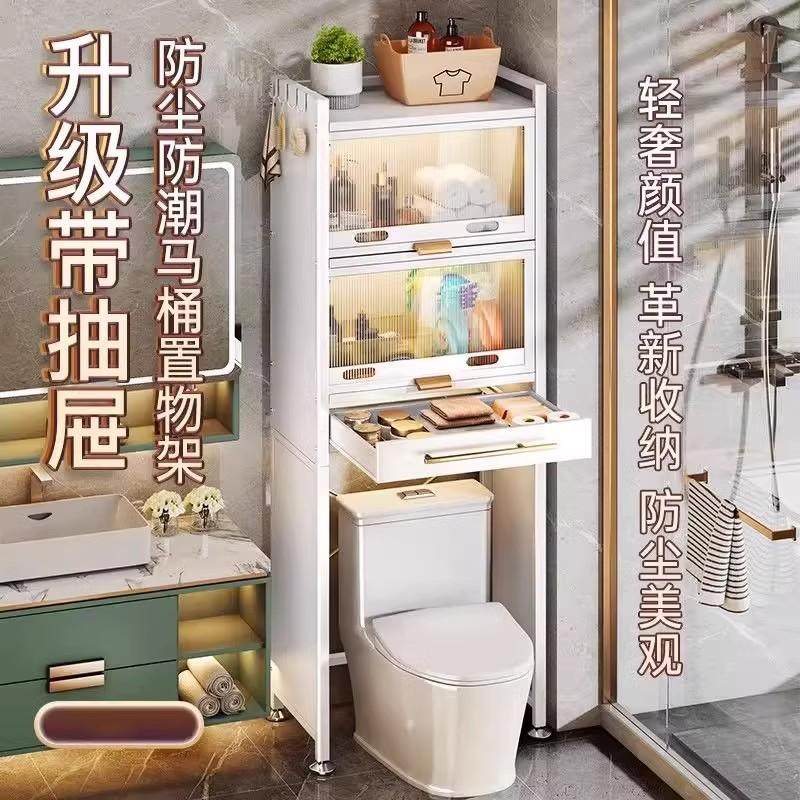 📚 卫生间置物架马桶上方储物柜厕所后空隙落地带门多层浴室收纳架子