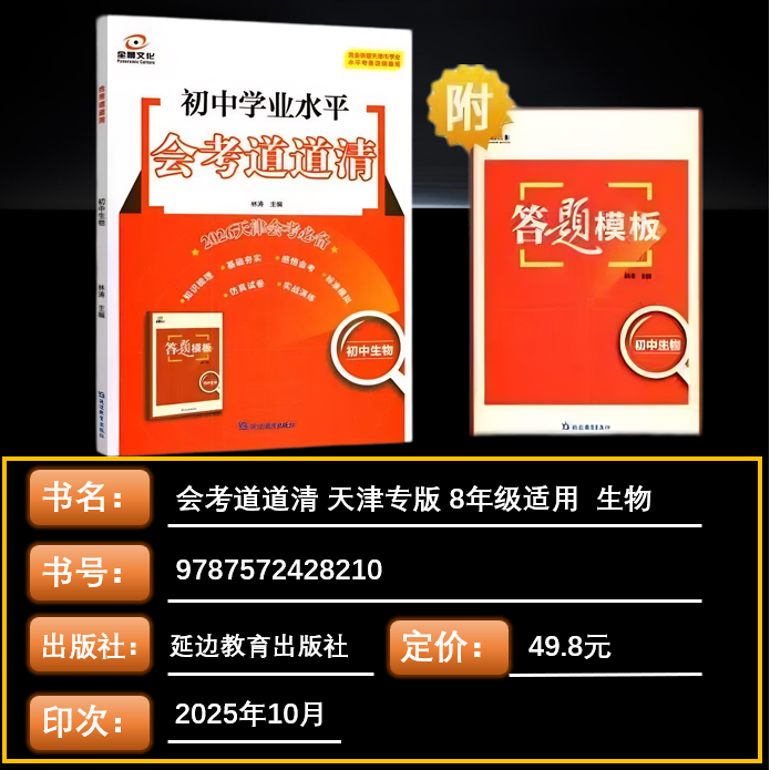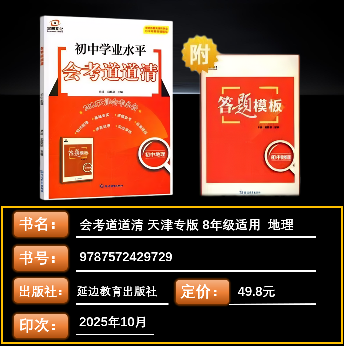 📚 2025全景文化天津会考必备初中地理生物2本套装学业水平会考道道清八年级专题训练仿真试题模拟往年真题实战天津专用初中学业水平