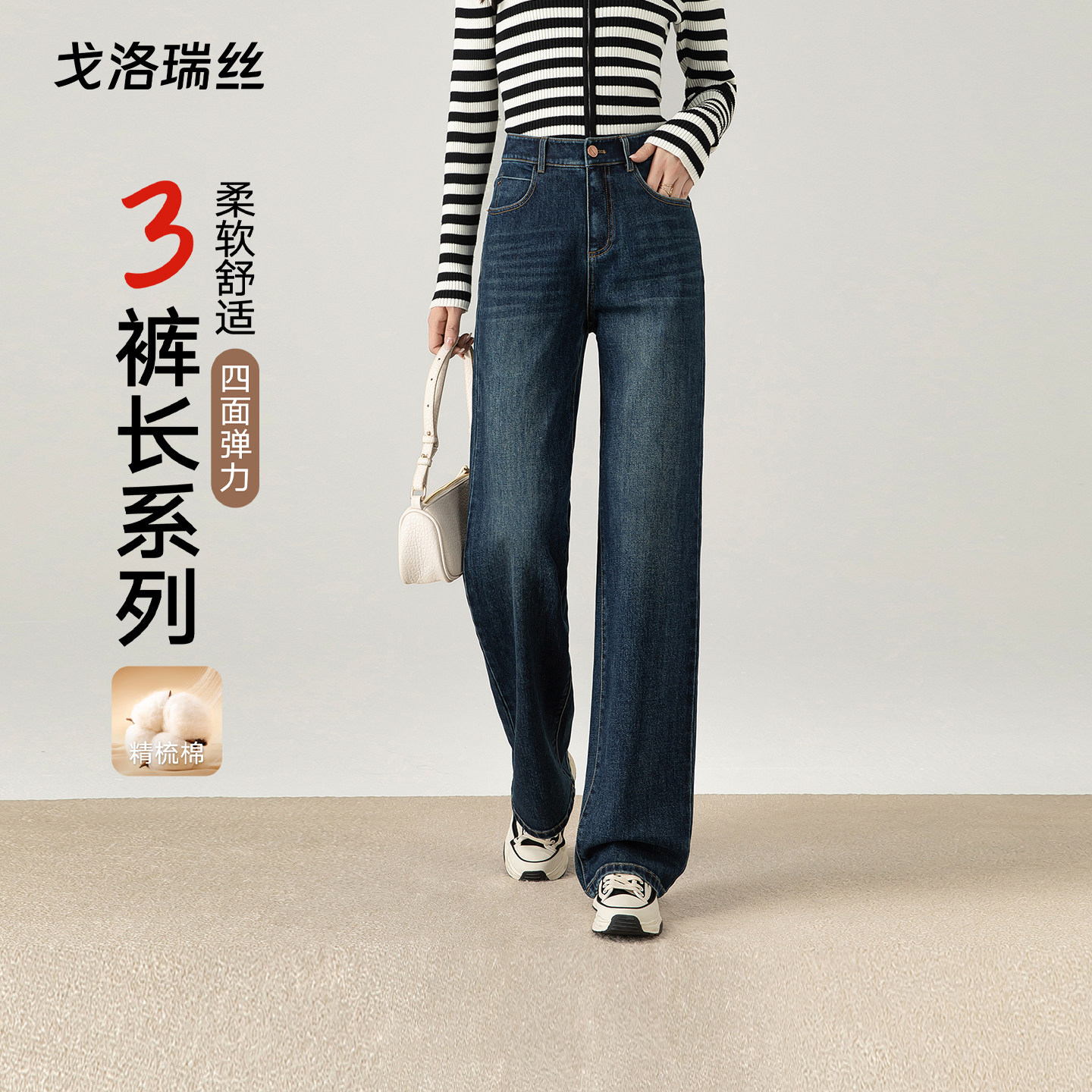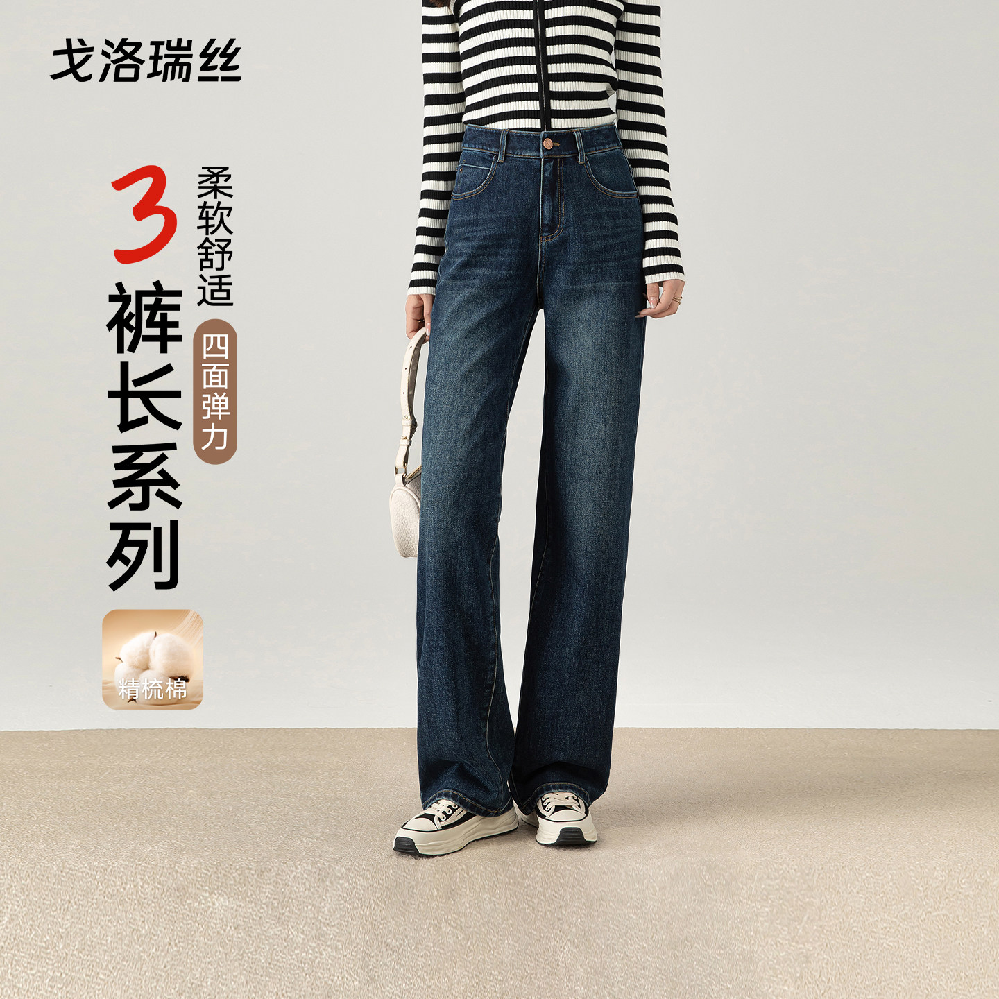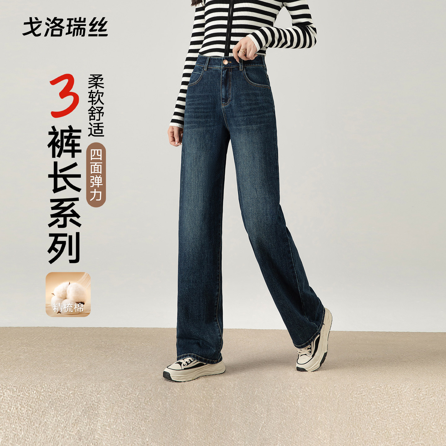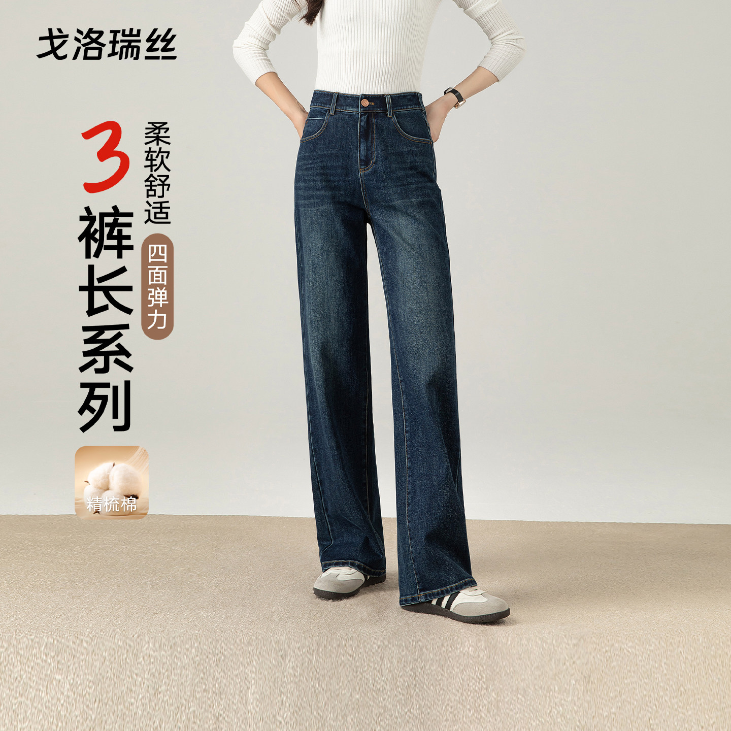 📚 戈洛瑞丝窄版阔腿牛仔裤女2025秋款小个子垂感高腰复古修身直筒裤