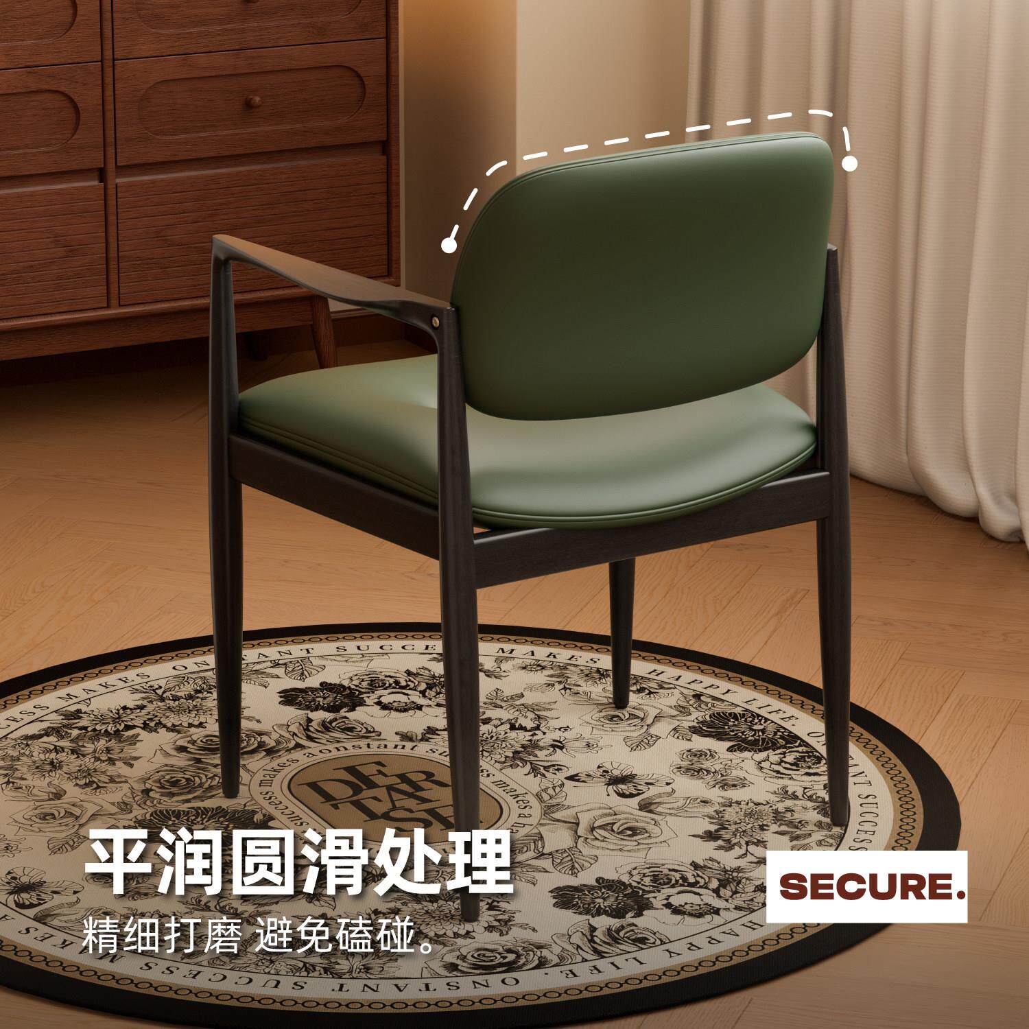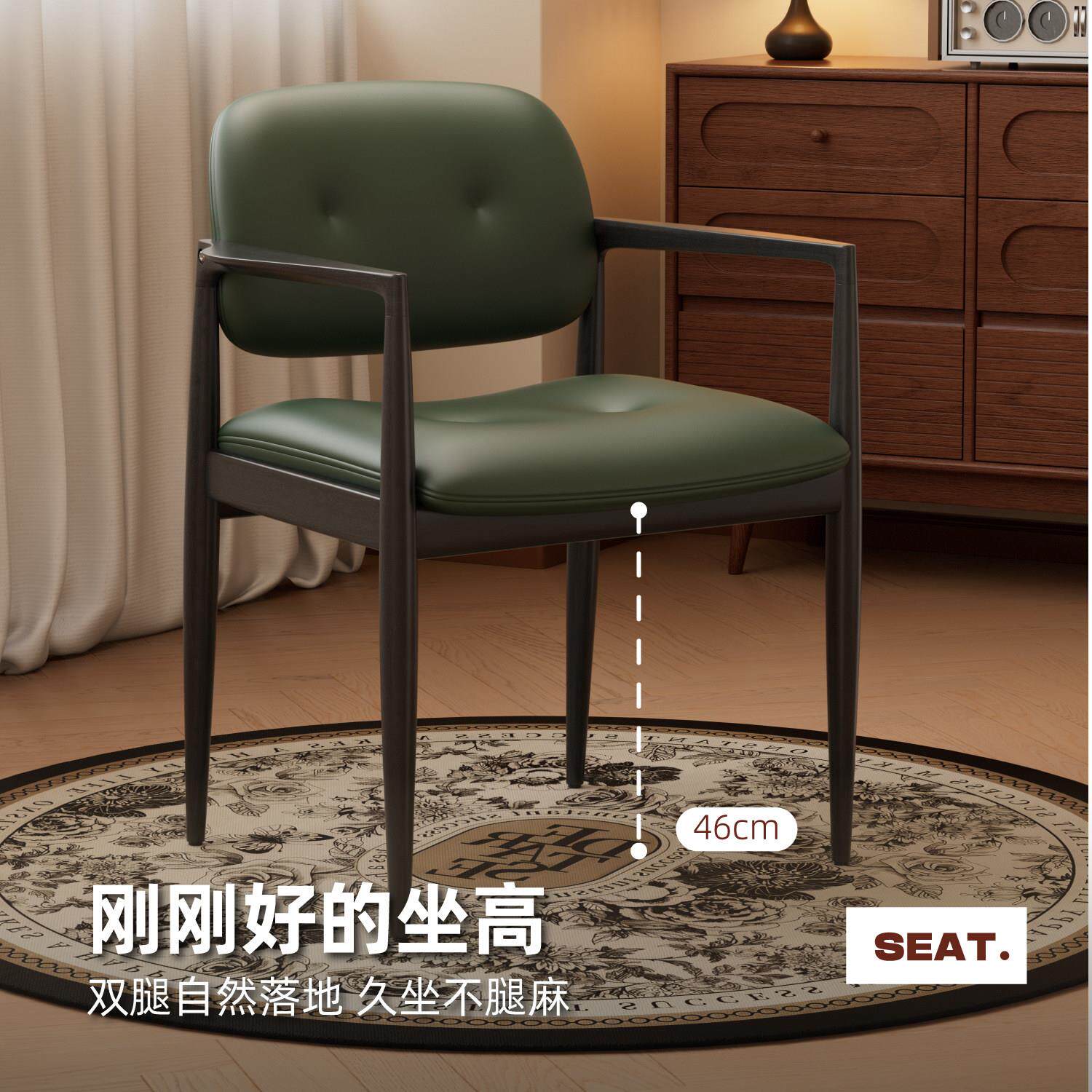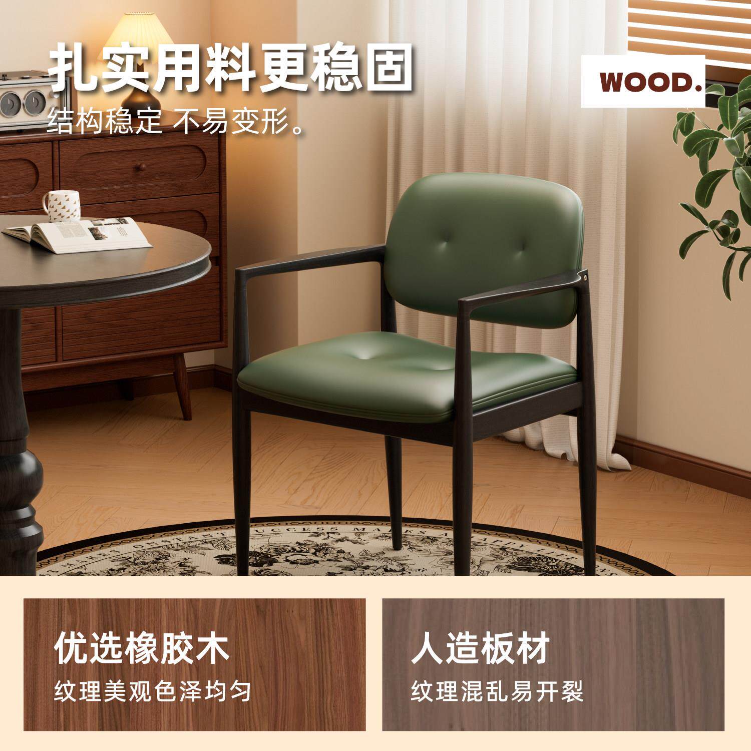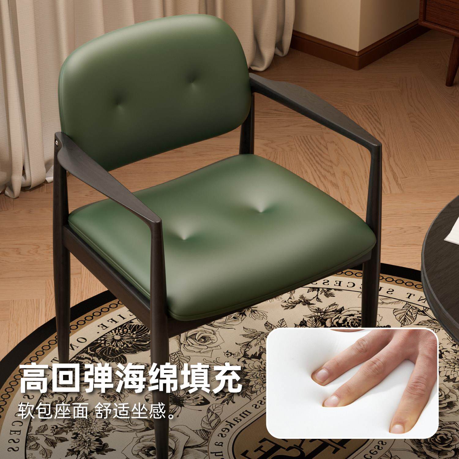 📚 覆古实木餐椅家用椅子舒适软包靠背椅带扶手靠背椅饭厅凳子书房椅