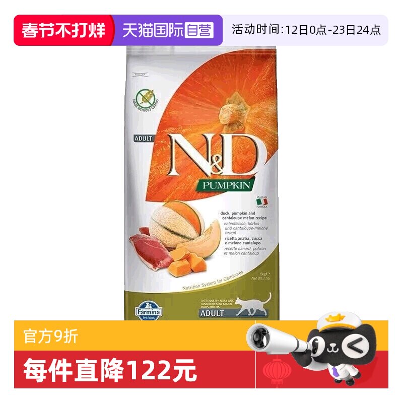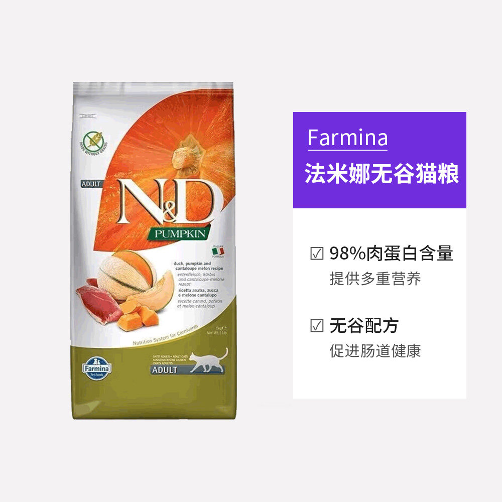 📚 【自营】Farmina法米娜猫粮5kg进口鸭肉南瓜无谷成猫粮宠物猫粮