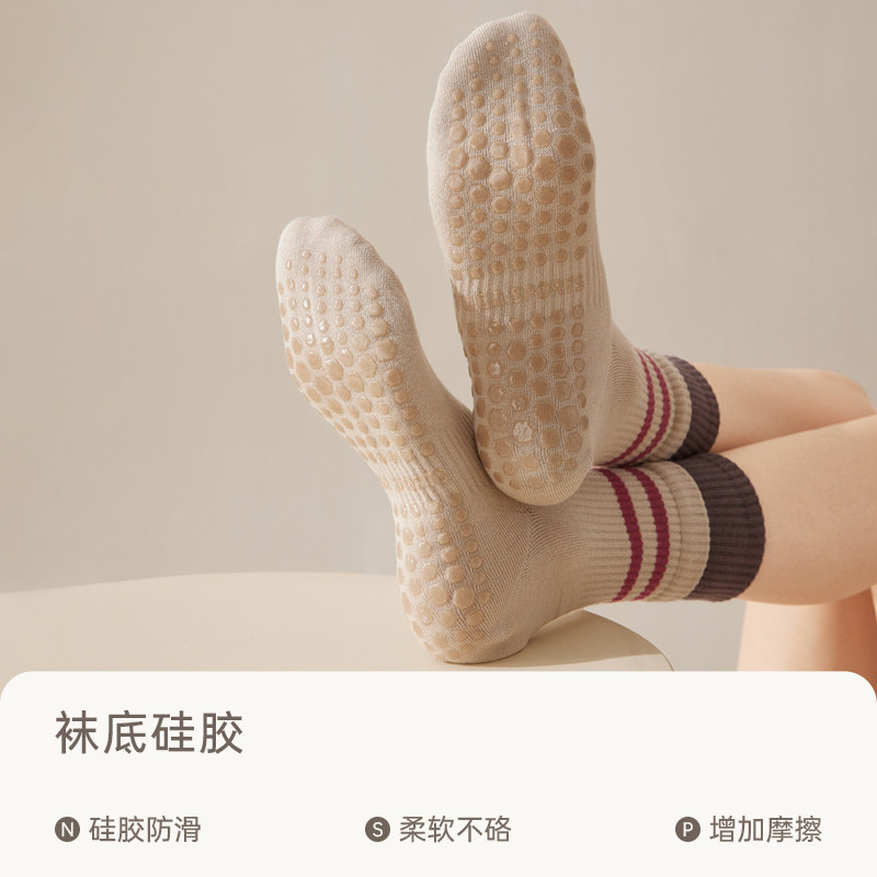 📚 瑜伽袜子女士中筒纯棉吸汗防滑硅胶普拉提室内专业运动健身地板袜