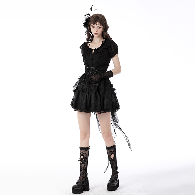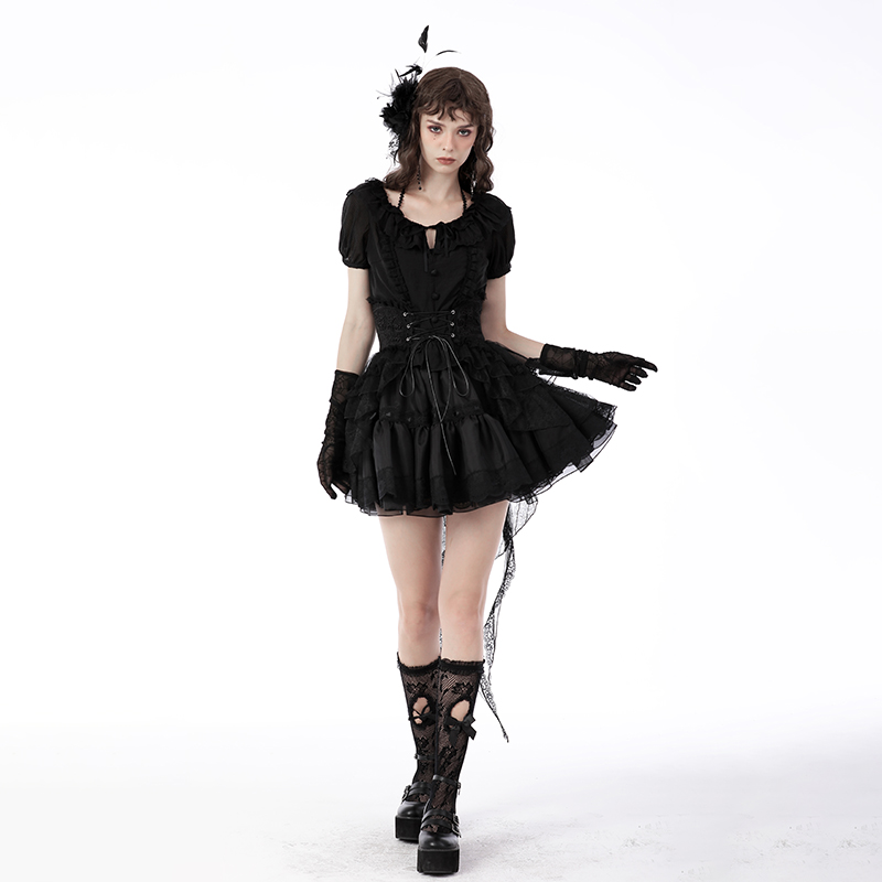 📚 DARK IN LOVE 个性原创哥特式奢华蕾丝尾高低束腰裙