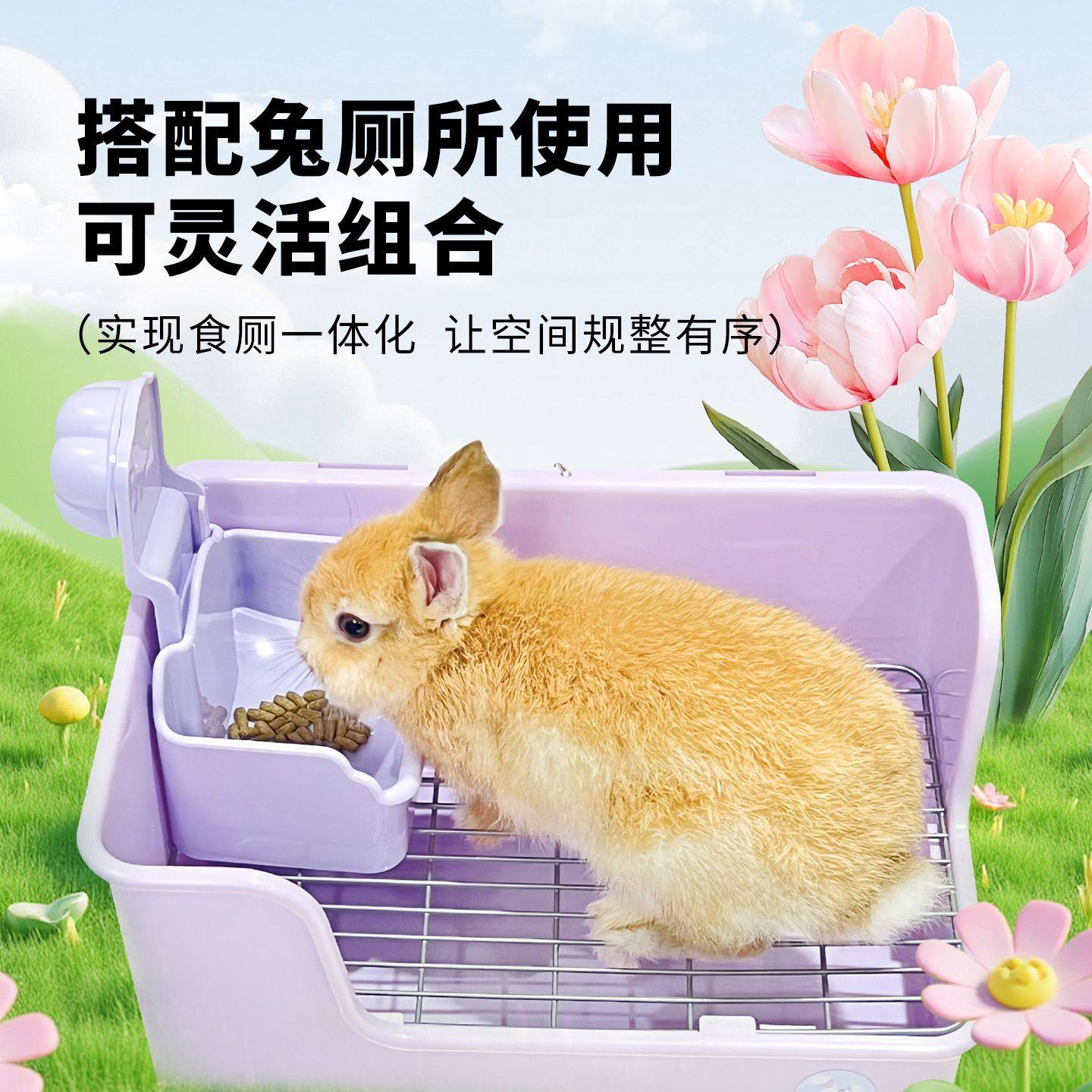 📚 兔子挂碗奶糕食盆兔兔饭碗厕所食厕一体套餐耐用易清洁