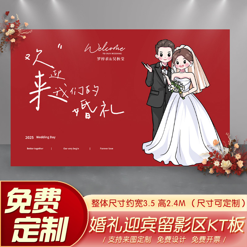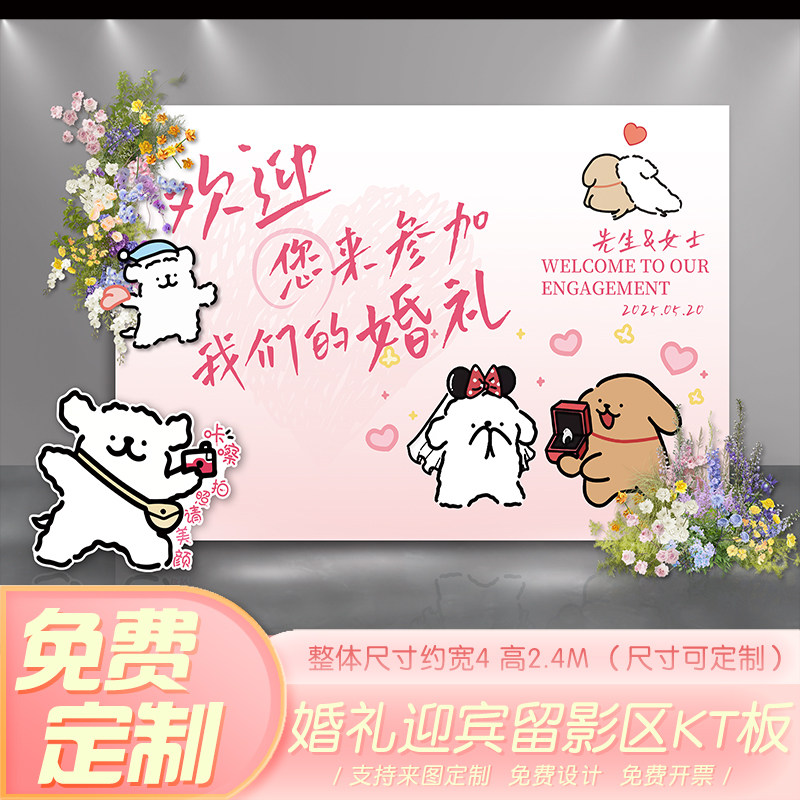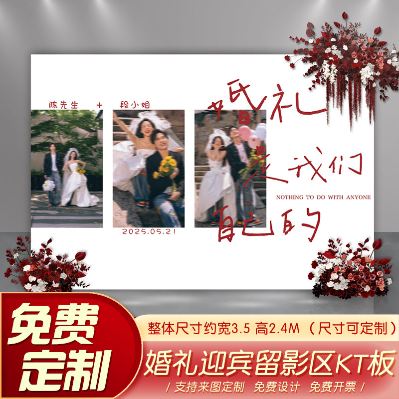 📚 结婚订婚kt板定制高级中式婚礼留影区背景墙布置迎宾装饰钟意印刷