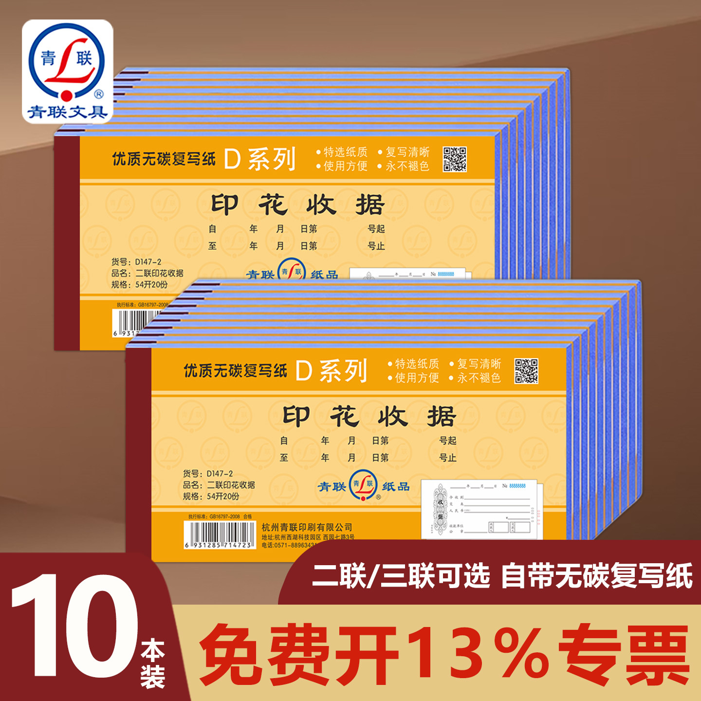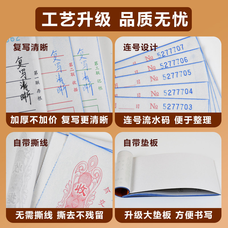 📚 青联D系列印花收据二联三联收款本华北北京天津专用优质无碳复写手写2联两联单栏收款单据现金收据二联单票据