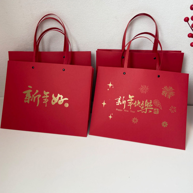 📚 新年礼品袋年会红色手提袋喜庆回礼袋定制年货礼物包装袋伴手礼袋