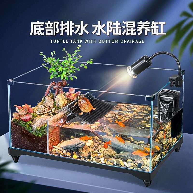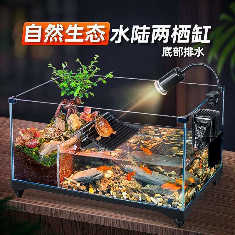 📚 乌龟饲养缸家用生态造景小别墅防逃逸水陆两栖缸养专用玻璃缸