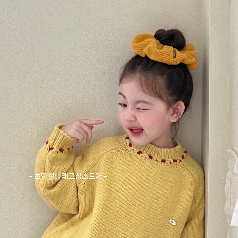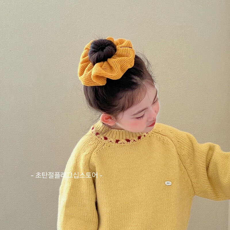 📚 黄色毛绒大肠发圈丸子头皮筋儿童发圈头绳女童头饰不伤发新款女孩