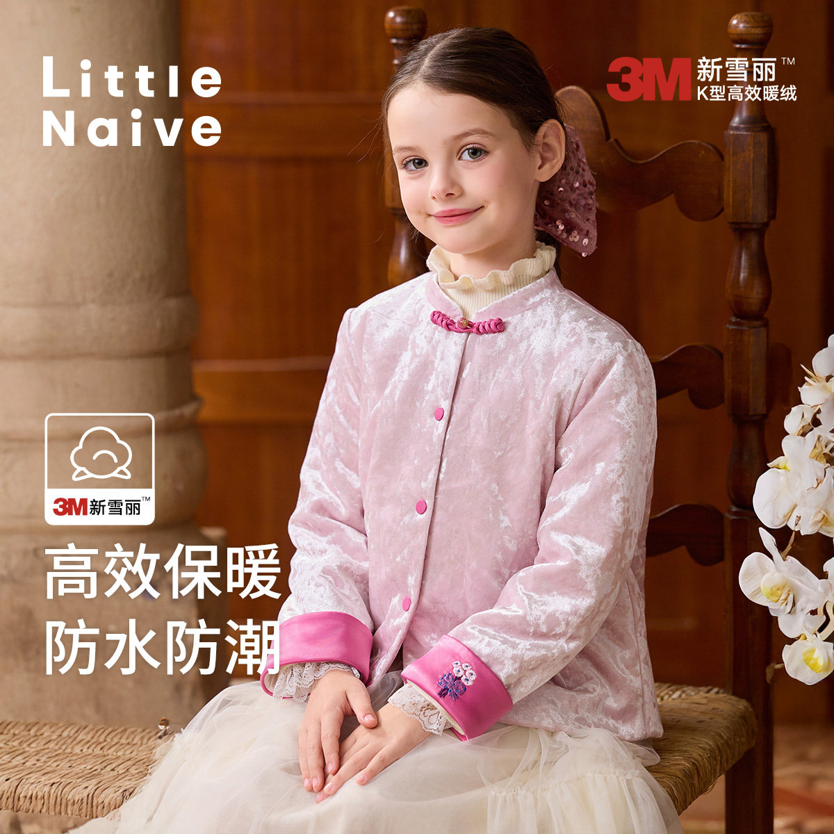📚 Little Naive儿童3M夹棉新雪丽保暖外套冬季棉袄女童新中式棉服
