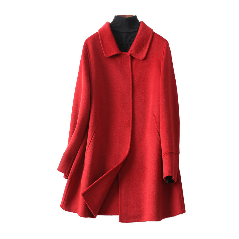 📚 毛呢外套女常规款酒红修身气质双面呢秋冬新款高档中年羊绒大衣女