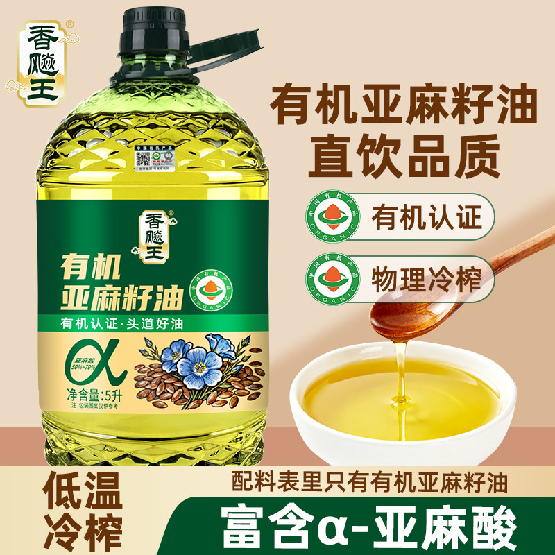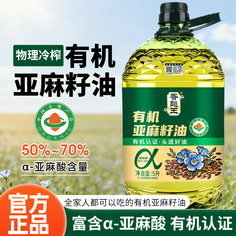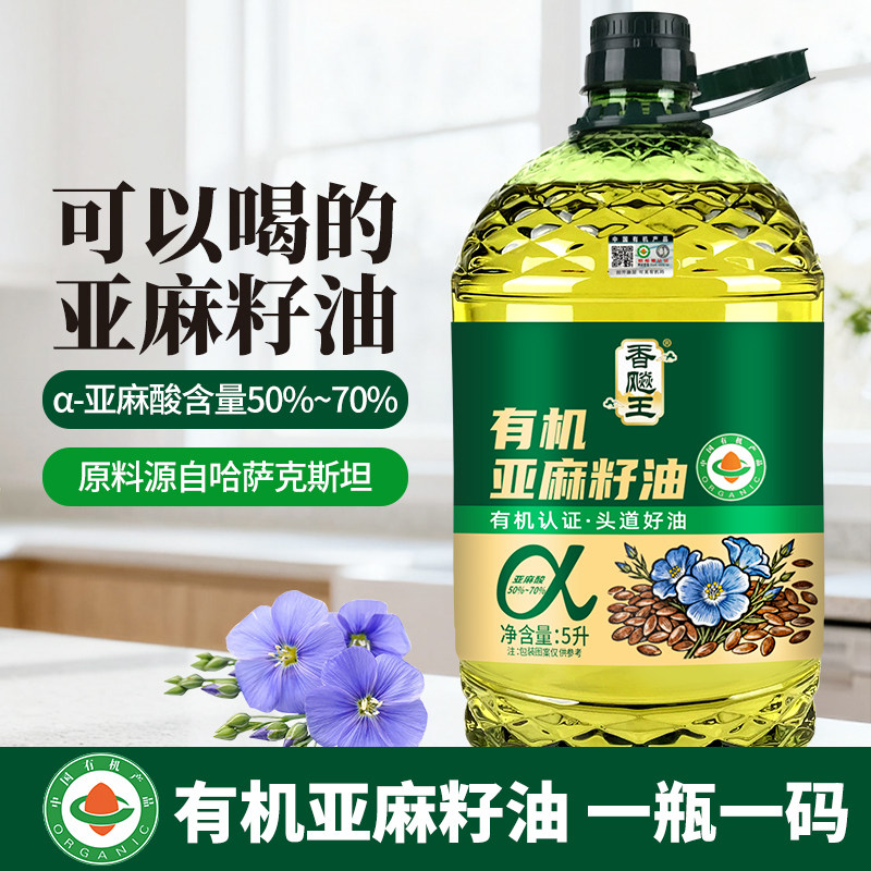 📚 【严格检测】100%纯有机亚麻籽油5L大桶一级正宗物理冷榨食用油