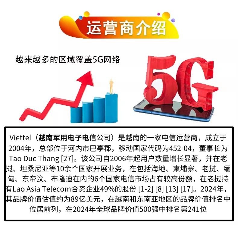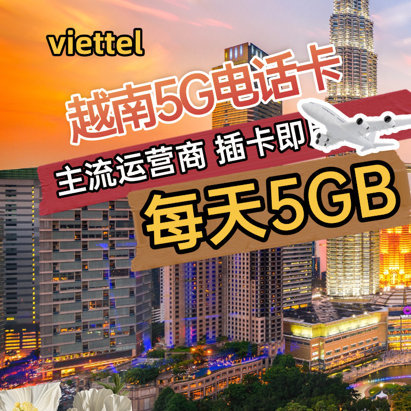 📚 越南电话卡viettel河内胡志明岘港芽庄流量上网5G卡每天5GB