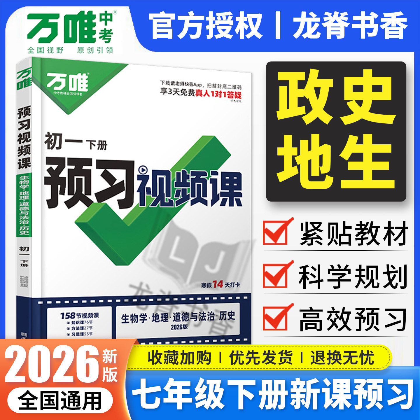 📚 2026春万唯七年级下册小四门预习视频课初一寒假作业政治历史地理生物人教版全国通用万维中考7下政史地生寒假衔接教材同步练习册