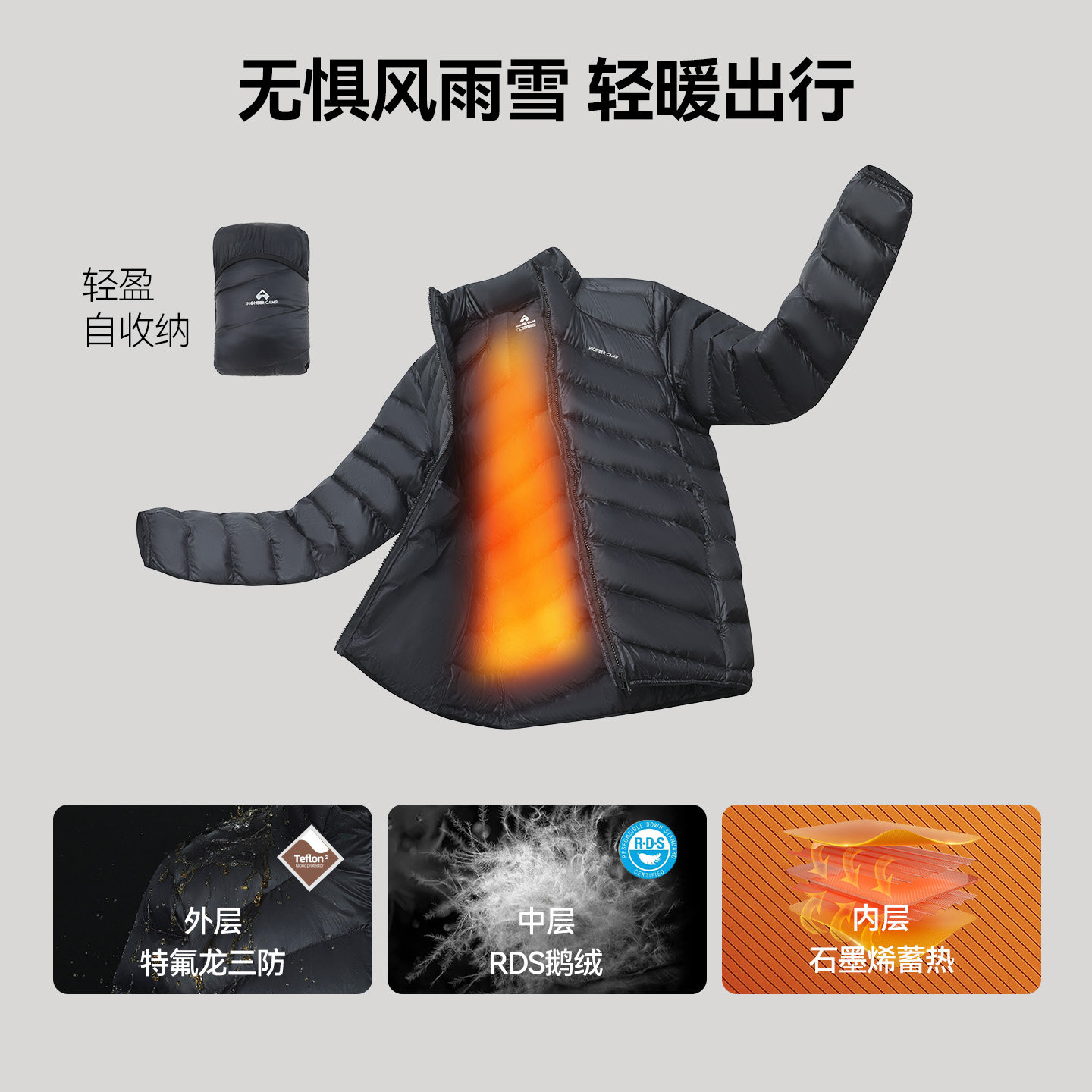 📚 拓路者【雪狐鹅绒服】户外内胆丨800蓬立领排骨鹅绒羽绒服男轻薄