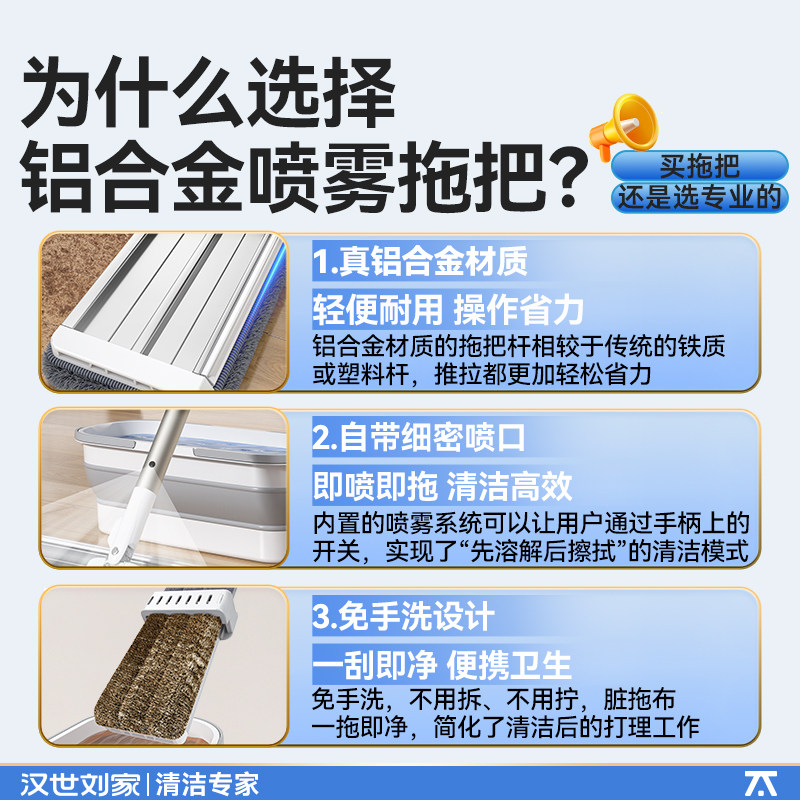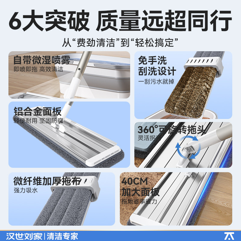 📚 汉世刘家喷水平板拖把2025新款家用一拖净免手洗懒人拖地神器
