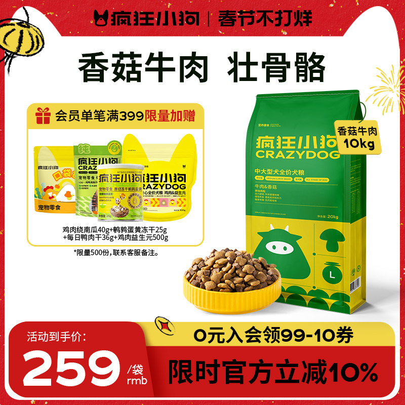 📚 疯狂小狗牛肉香菇肉粒双拼狗粮40斤装金毛拉布拉多边牧大型犬成犬