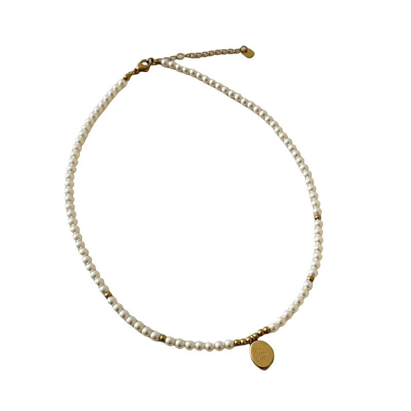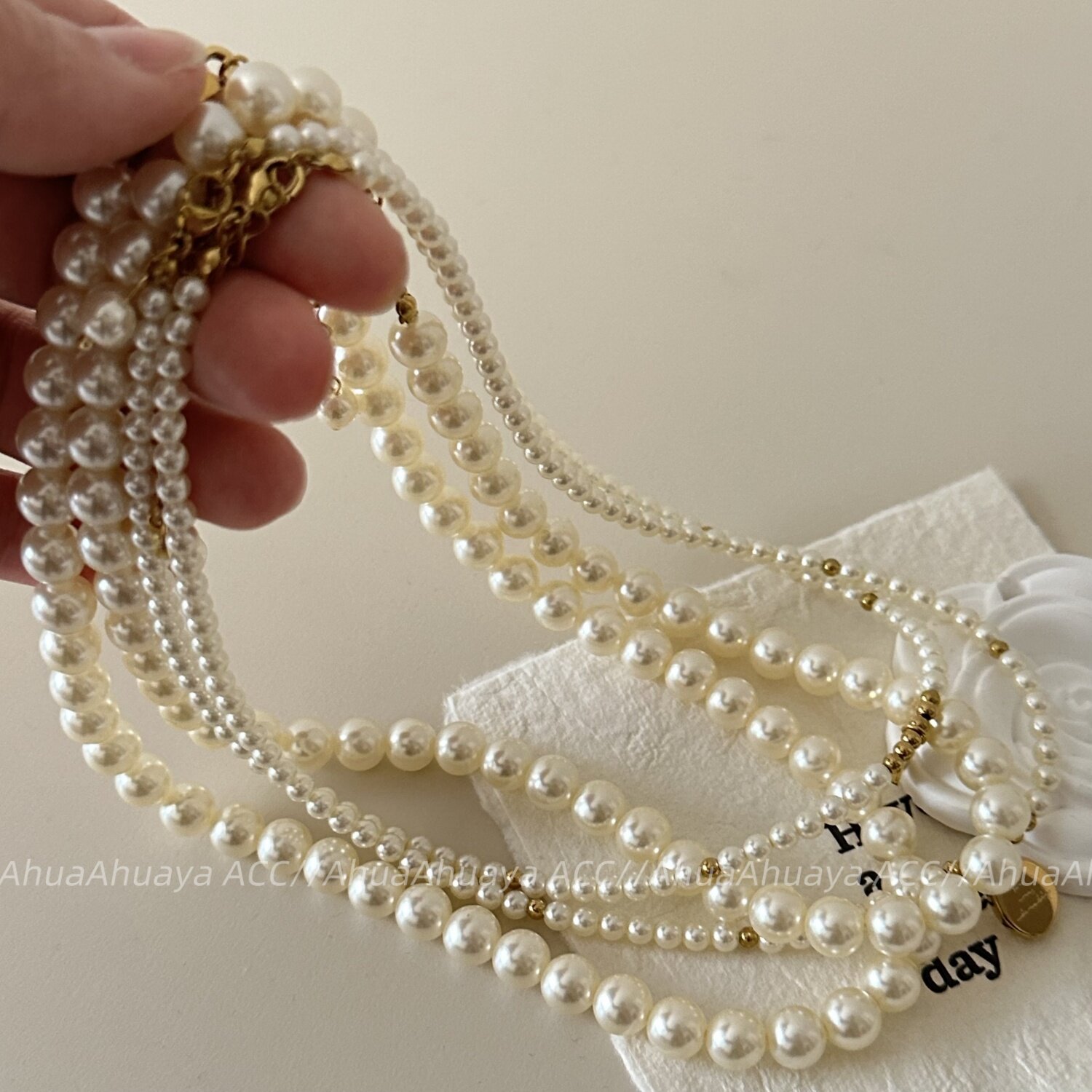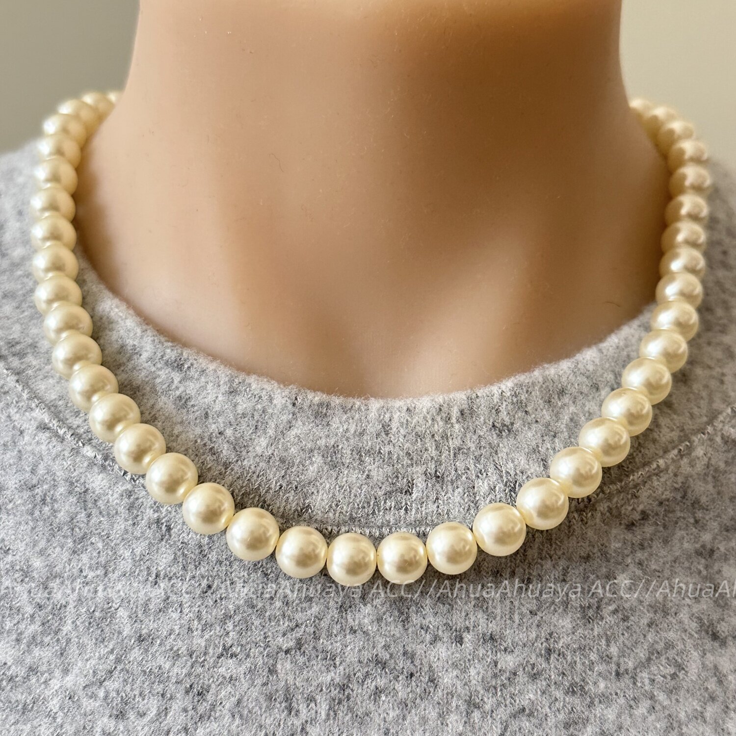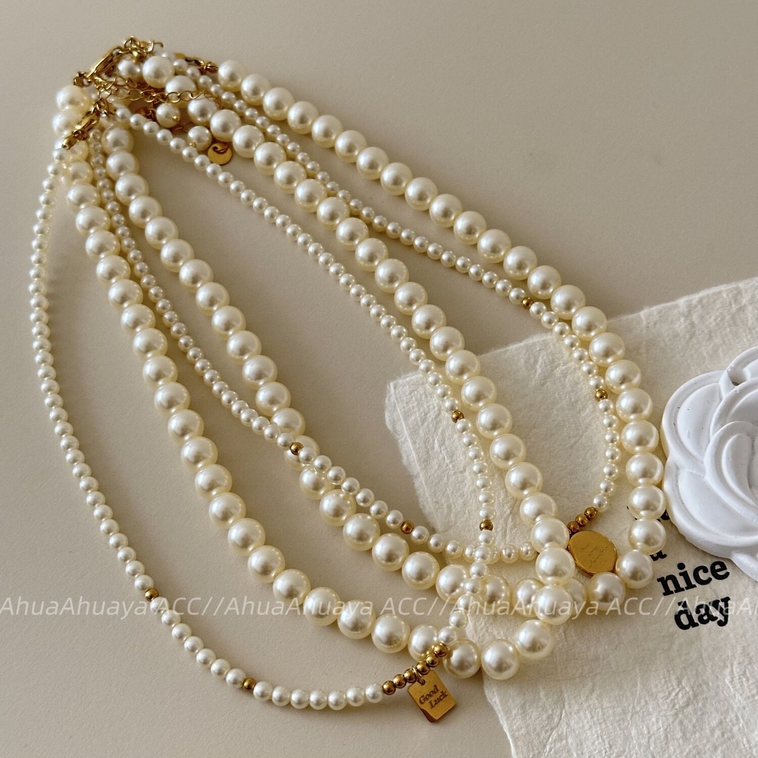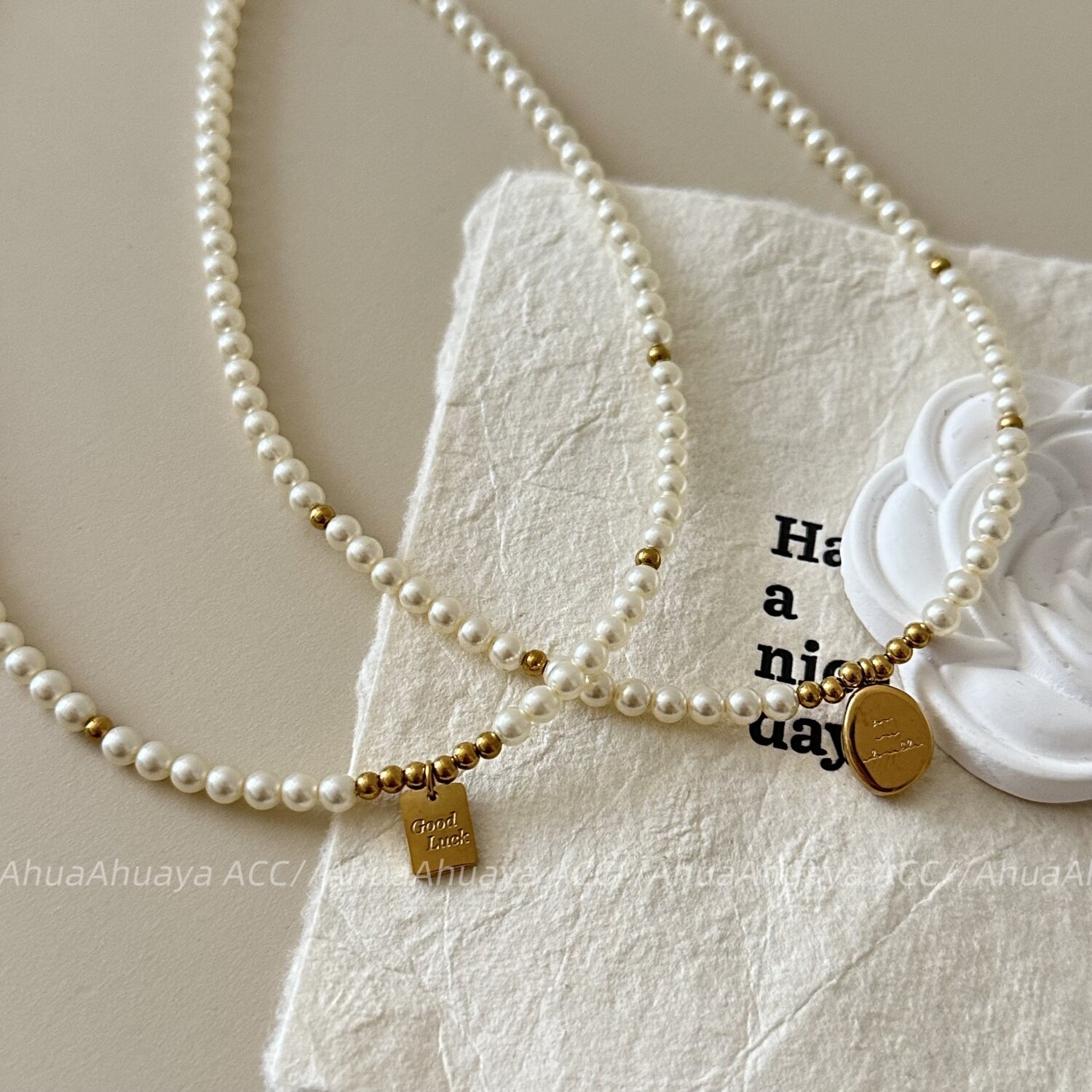 📚 法式优雅气质奶油米黄色珍珠钛钢吊坠链接时尚百搭项链个性叠戴链