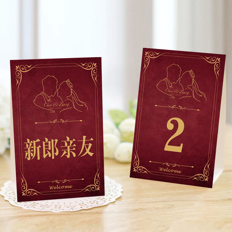 📚 定制红金台卡欧式婚礼桌卡创意结婚桌卡席位卡嘉宾座位卡桌牌名单