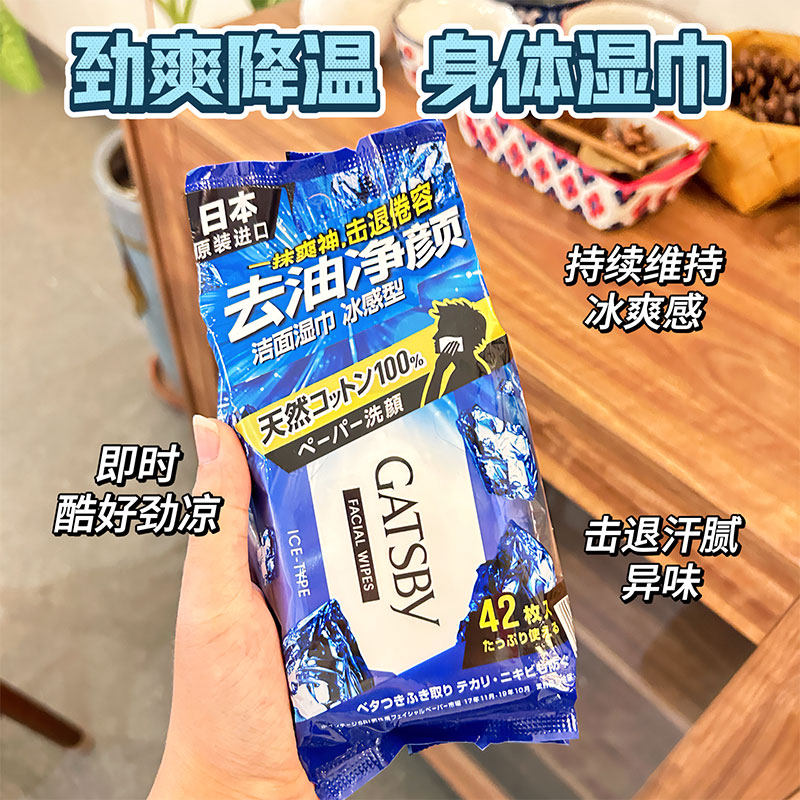 📚 日本gatsby杰士派洁面湿纸巾冰感型42片降温去油湿巾男士专用湿巾
