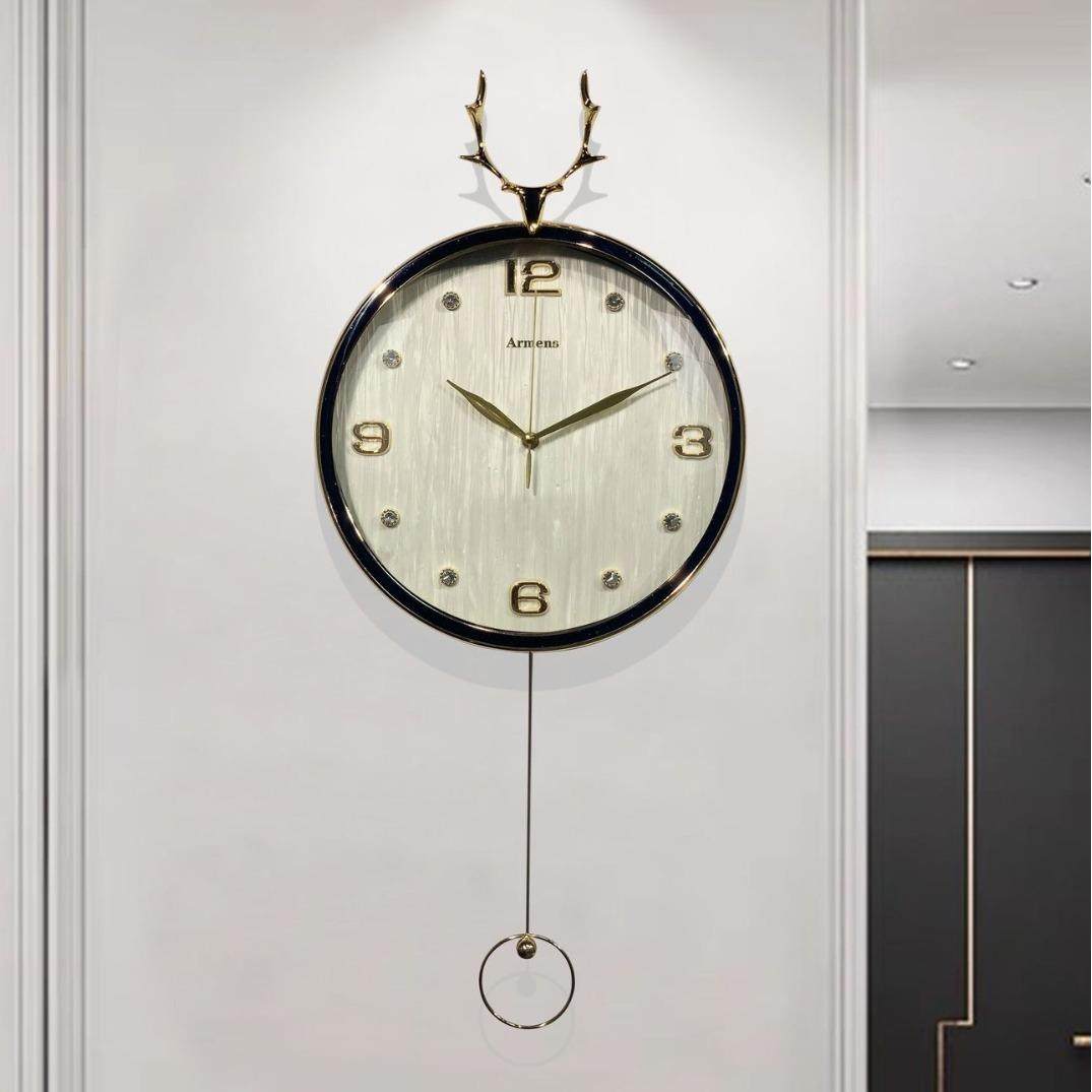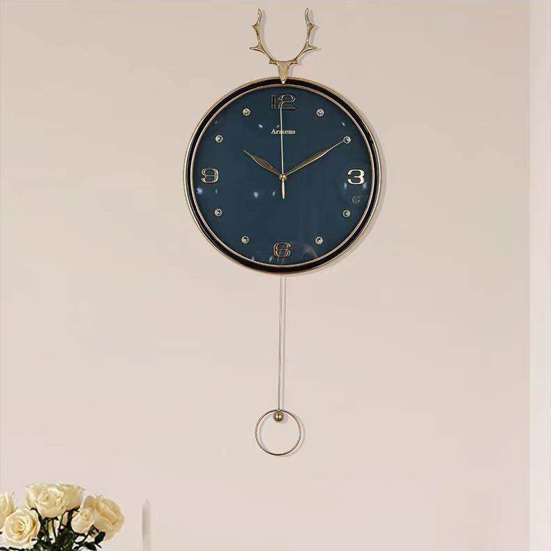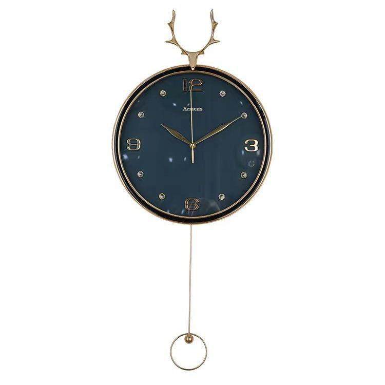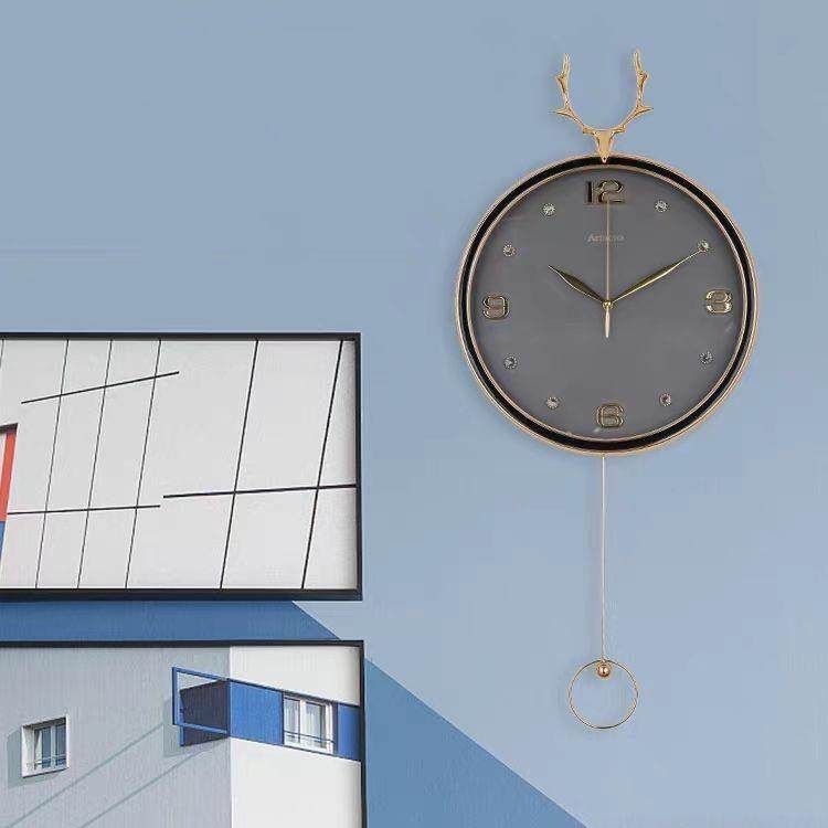 📚 鹿头客厅家用钟创意简约时尚个性挂墙静音扫秒锌合金挂钟壁挂式