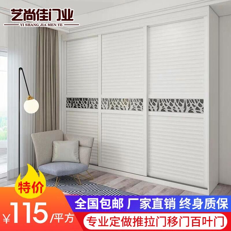 📚 特价定制衣柜门推拉门移门百叶门木塑海浪钛镁合金滑移门柜门定做