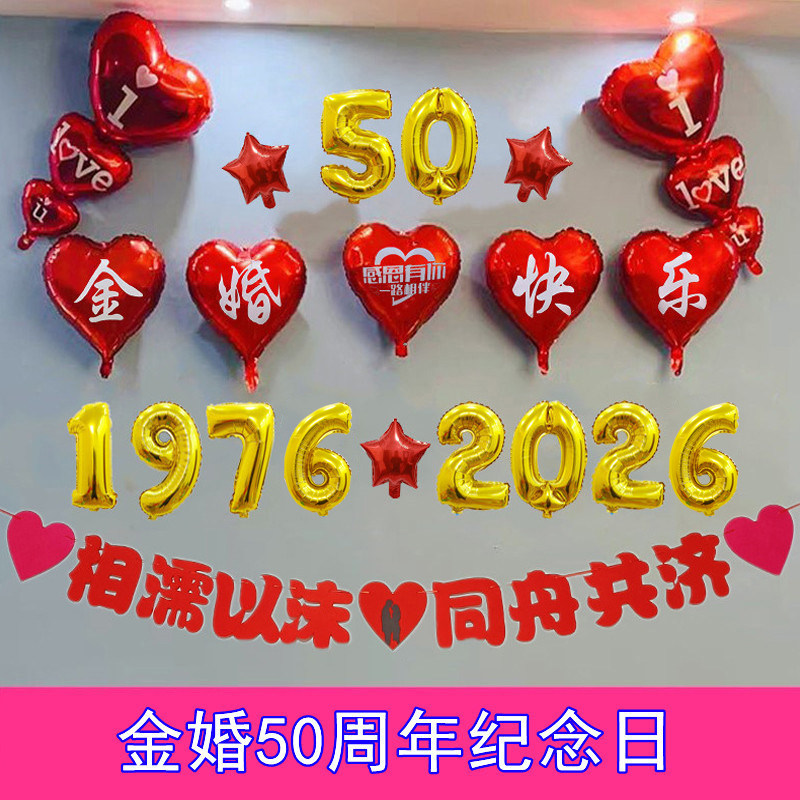 📚 金婚纪念日布置结婚50周年气球装饰仪式感客厅场景酒店包间背景墙