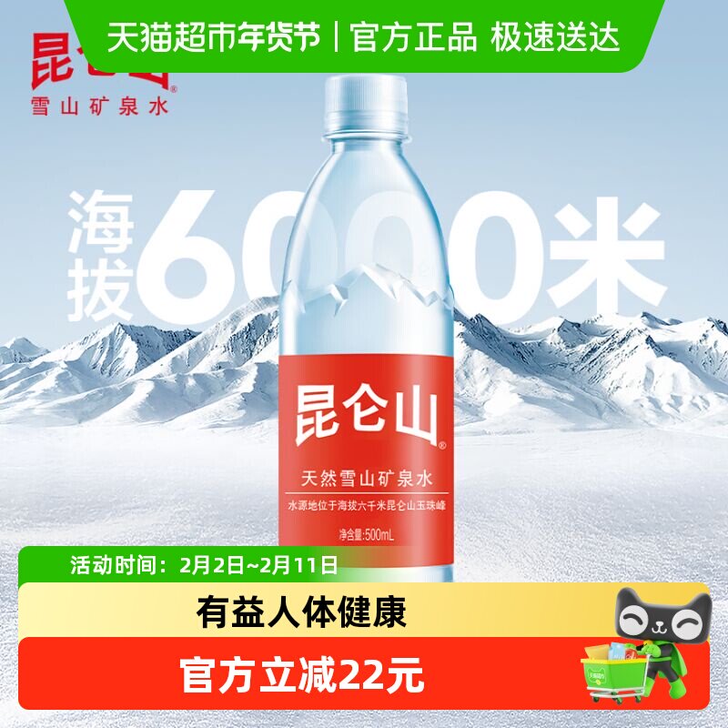 📚 昆仑山高端雪山天然矿泉水500ml*18瓶弱碱性品质好水整箱