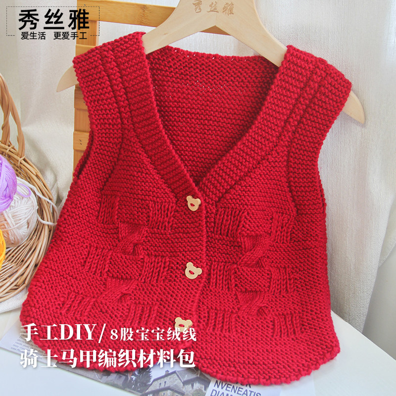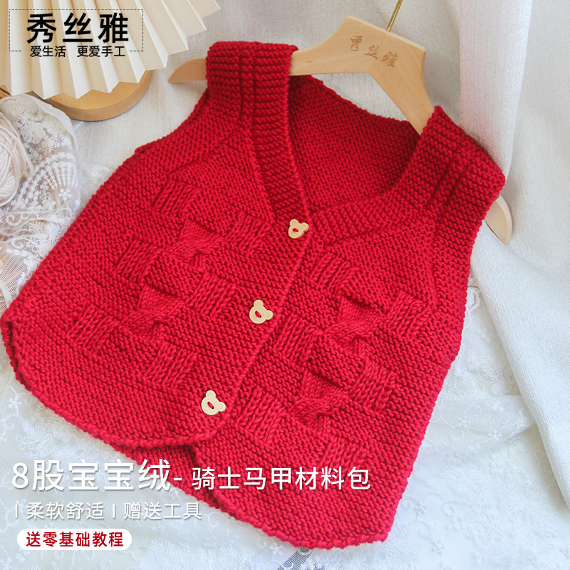 📚 秀丝雅八股宝宝绒线骑士马甲棒针毛线毛衣开衫线diy编织材料包