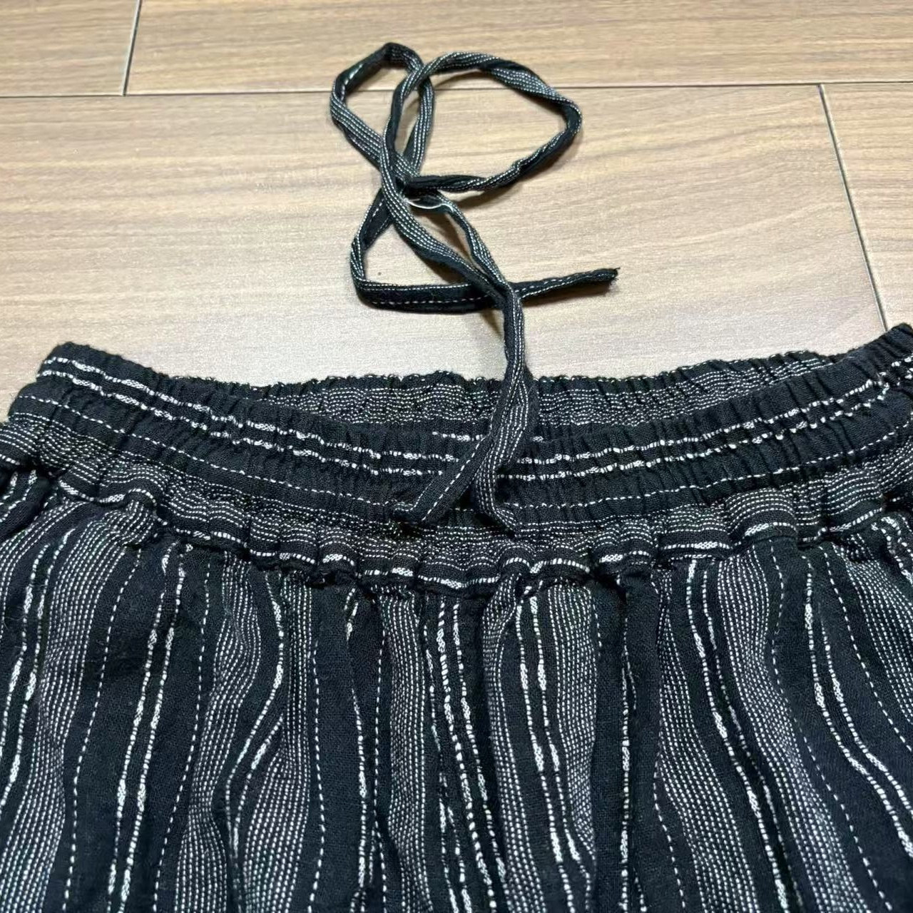 📚 高垂感纯麻细条纹直筒裤女2026夏季新款系带松紧腰宽松亚麻长裤