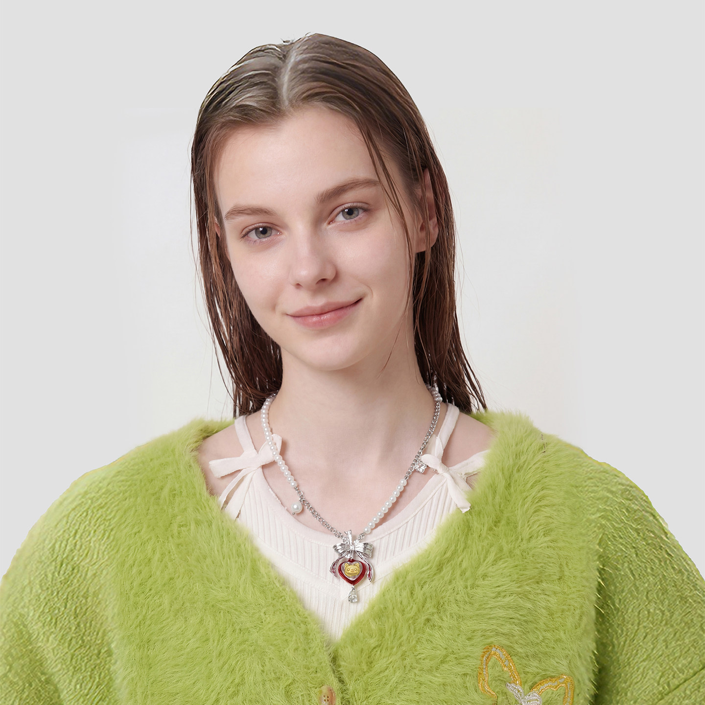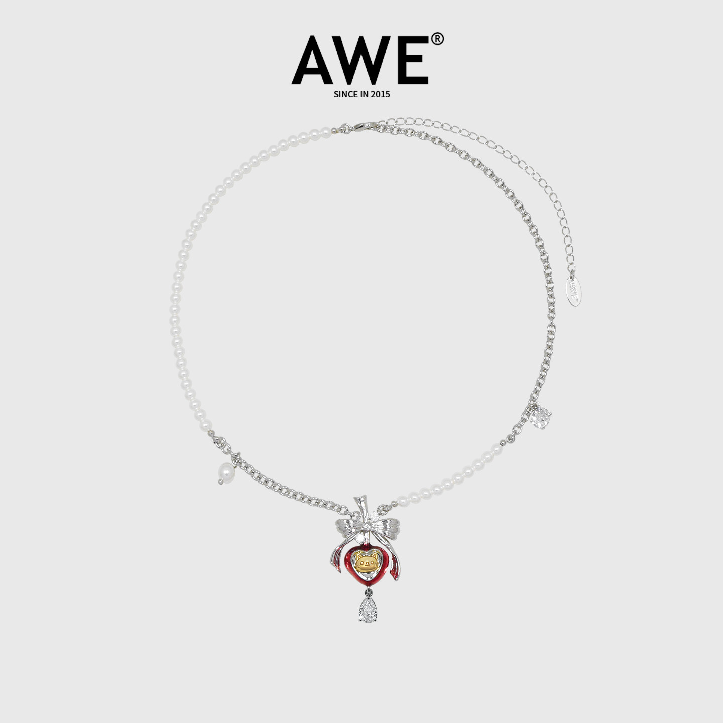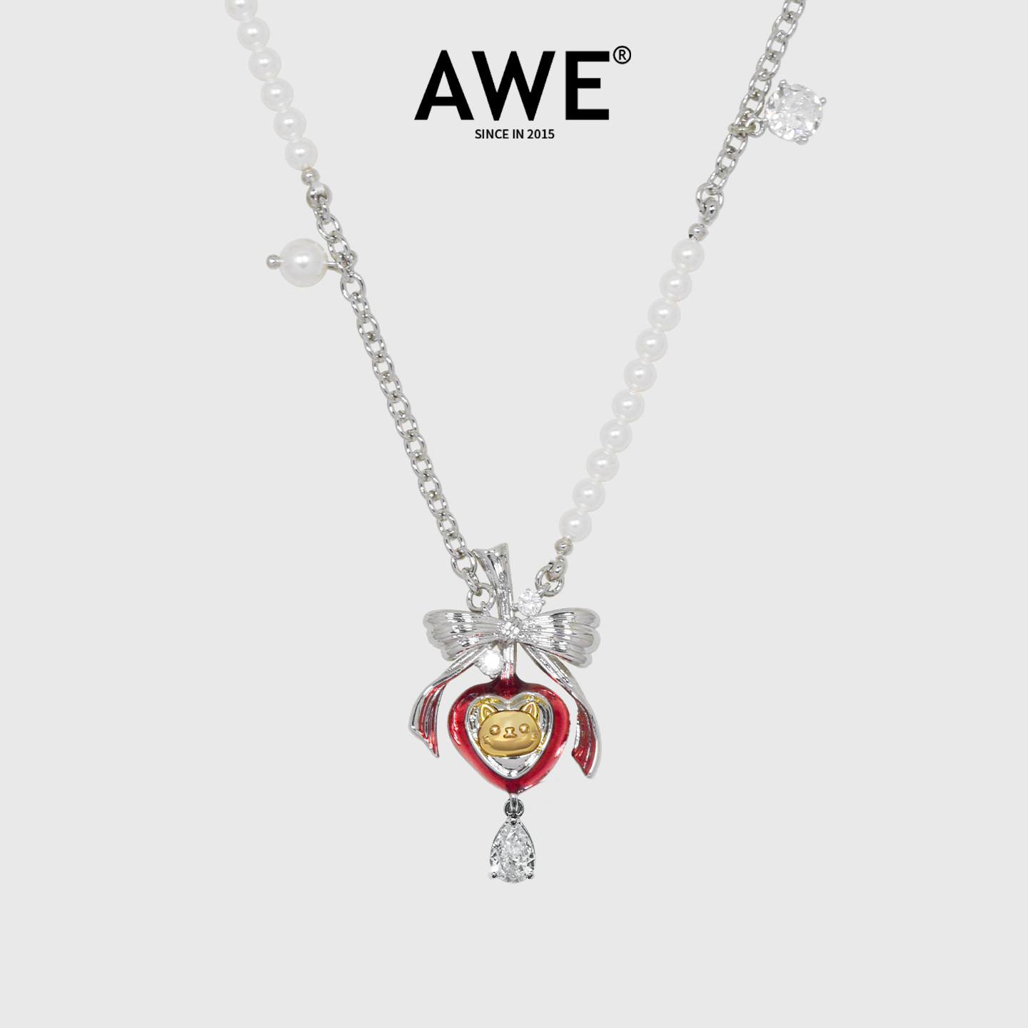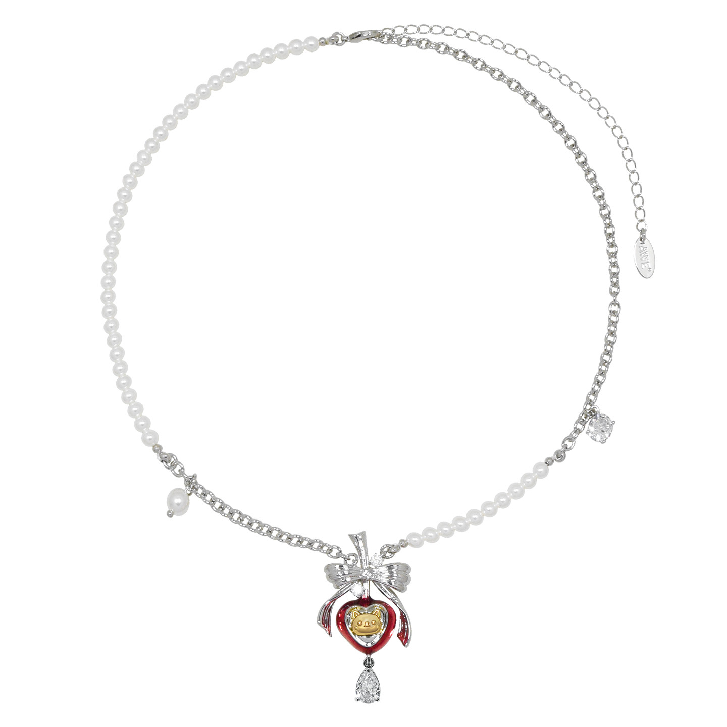 📚 AWE蝴蝶结红色爱心番茄小猫项链穆祉丞同款新年穿搭珍珠毛衣链女
