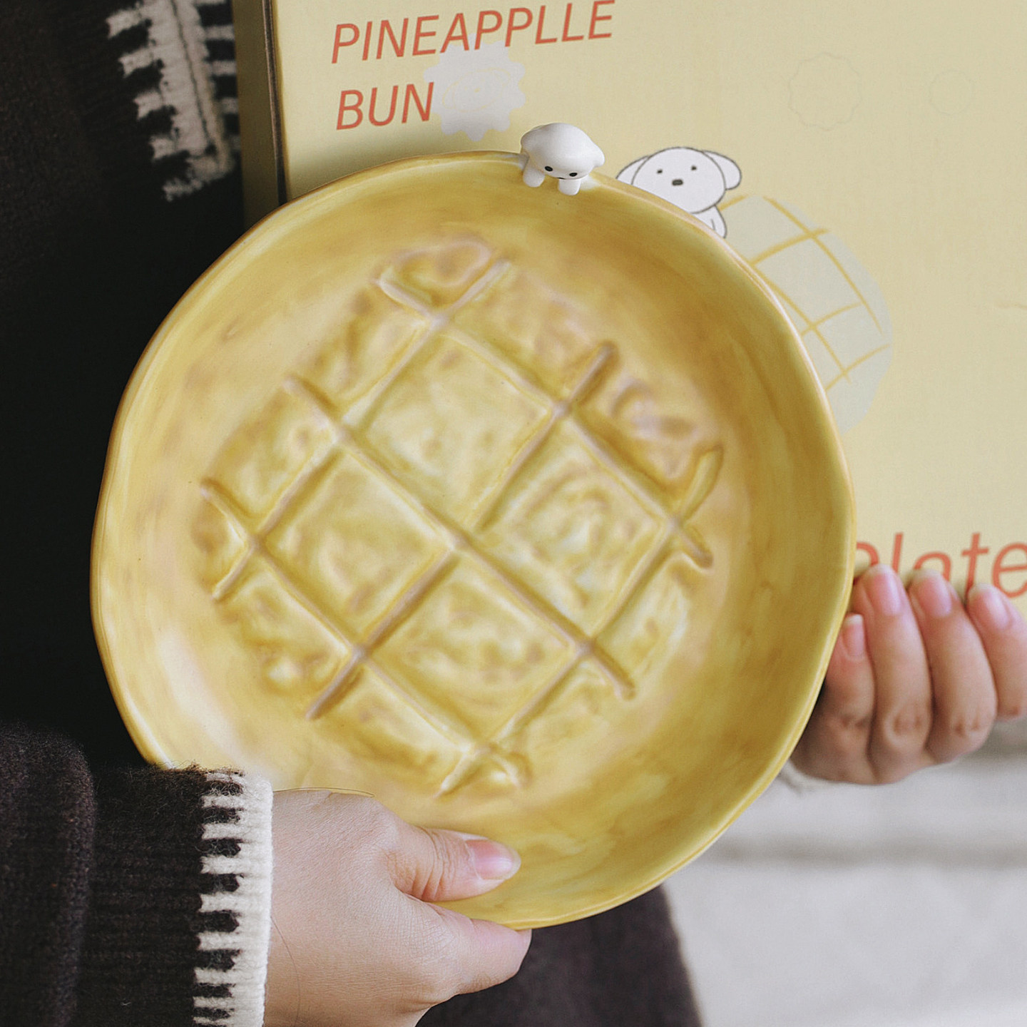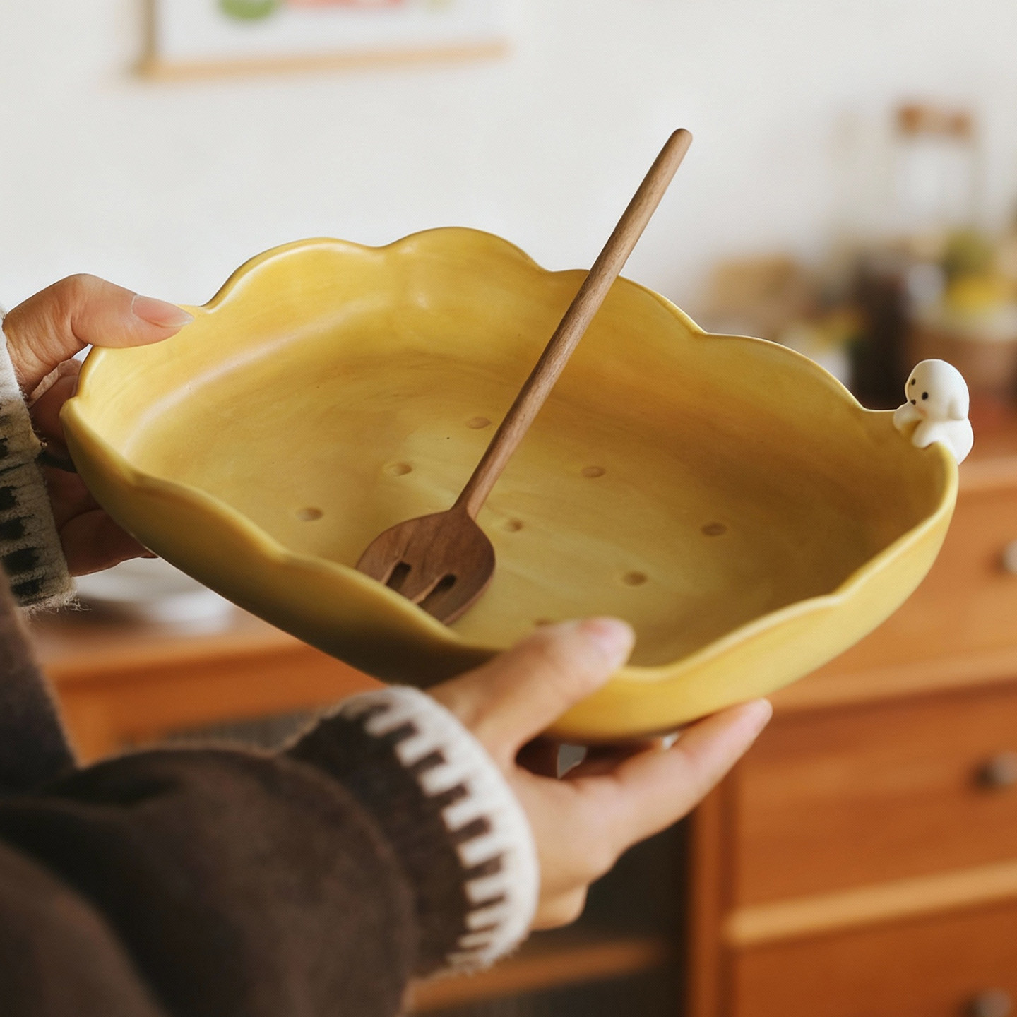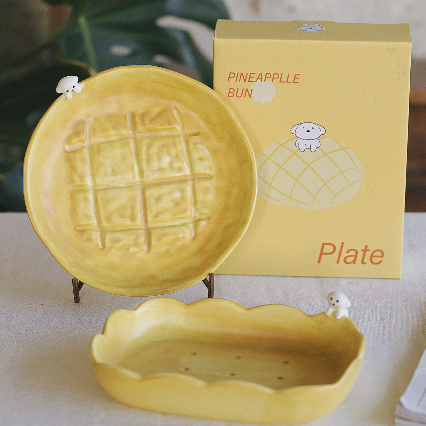 📚 泽滕家长盘子卷边奶油风黄色甜品点心蛋糕慕斯零食水果沙拉卡通碟