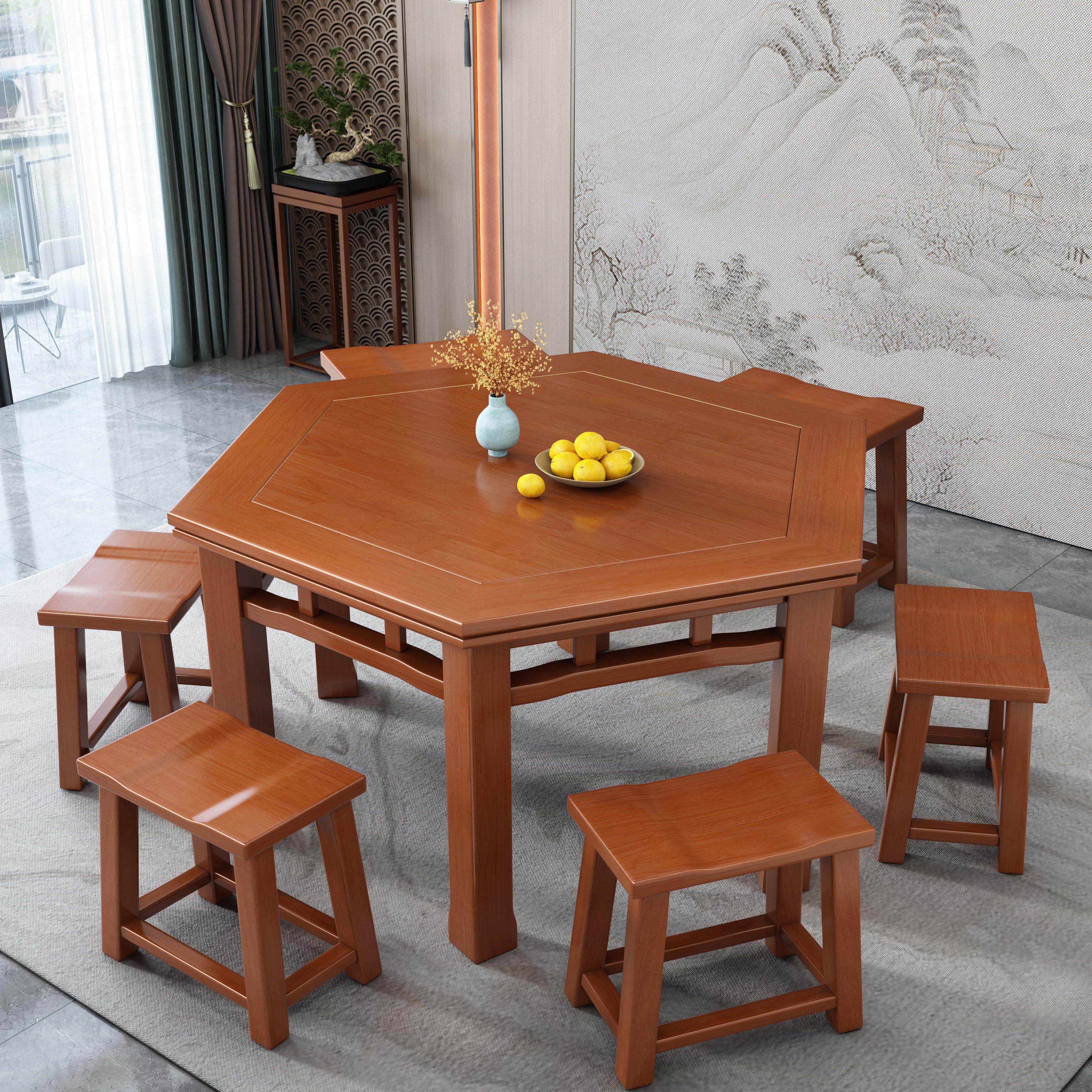 📚 老式八仙桌方桌长方桌六边形桌传统卯榫结构全实木内嵌岩板整装发