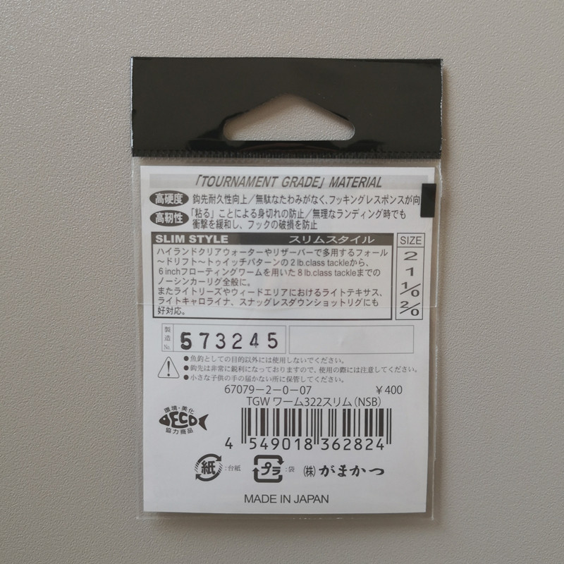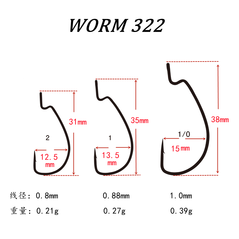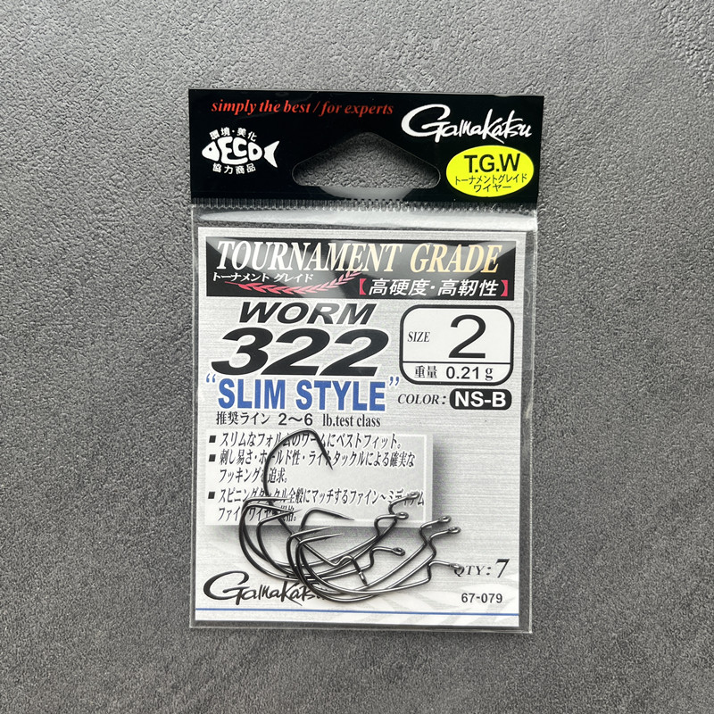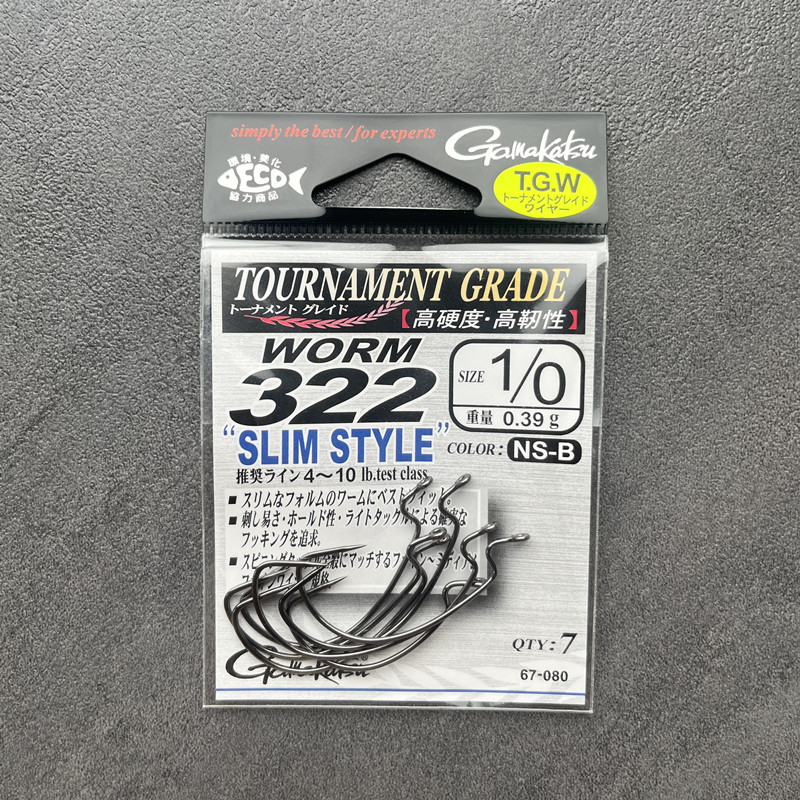 📚 日本Gamakatsu伽玛卡兹细条宽幅曲柄钩WORM322路亚软虫钩鲈鱼SLIM