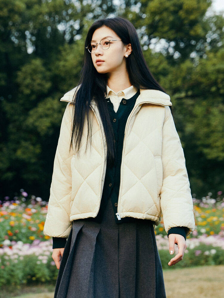 绗缝休闲风鹅绒短款翻领