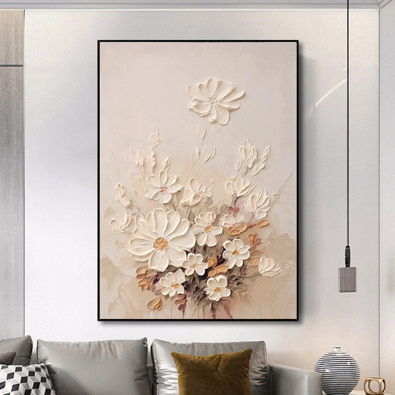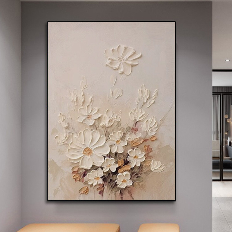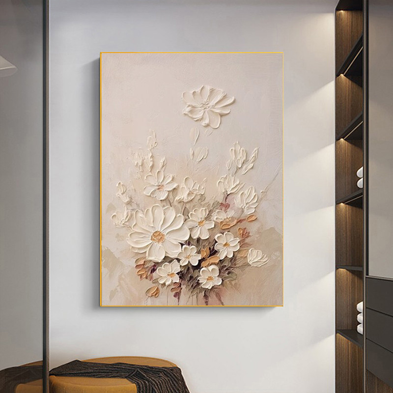 📚 纯手绘油画花卉菊花印象油画北欧现代简约玄关客厅装饰画抽象挂画