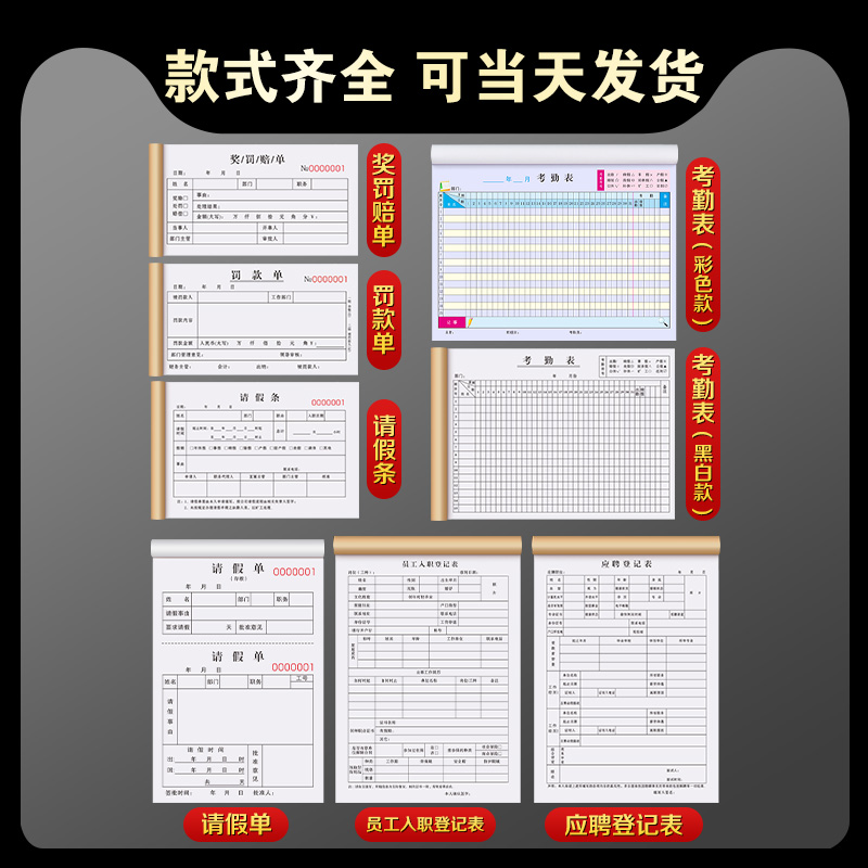 📚 奖罚单员工罚款处罚奖励罚单二联公司申请入职登记本考勤表假条单