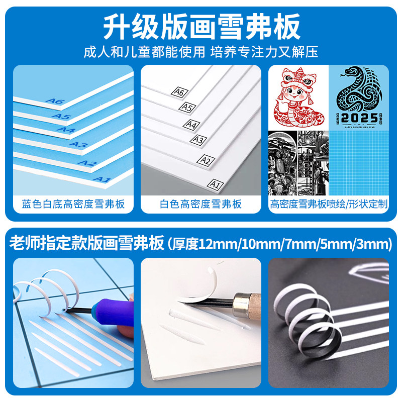 📚 雪弗板版画雕刻美术专用手工雕刻仿木刻板胶板马利油墨拓印刷材料
