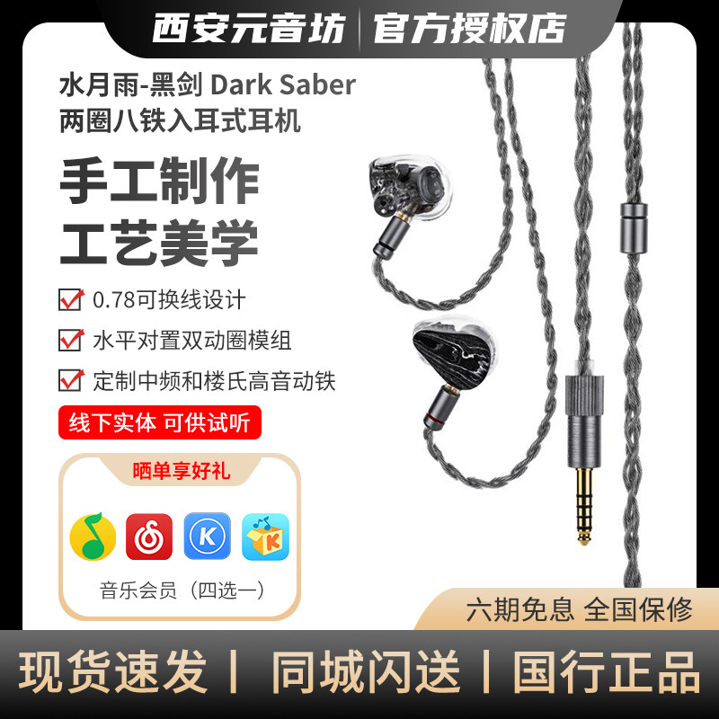 📚 水月雨 黑剑/Dark Saber两圈八铁入耳式耳机旗舰HIFI发烧可换插头