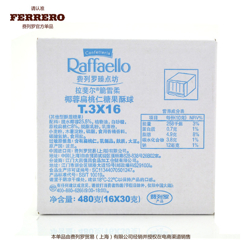 📚 费列罗巧克力拉斐尔白球椰蓉酥球48粒盒装零食喜糖礼品520情人节