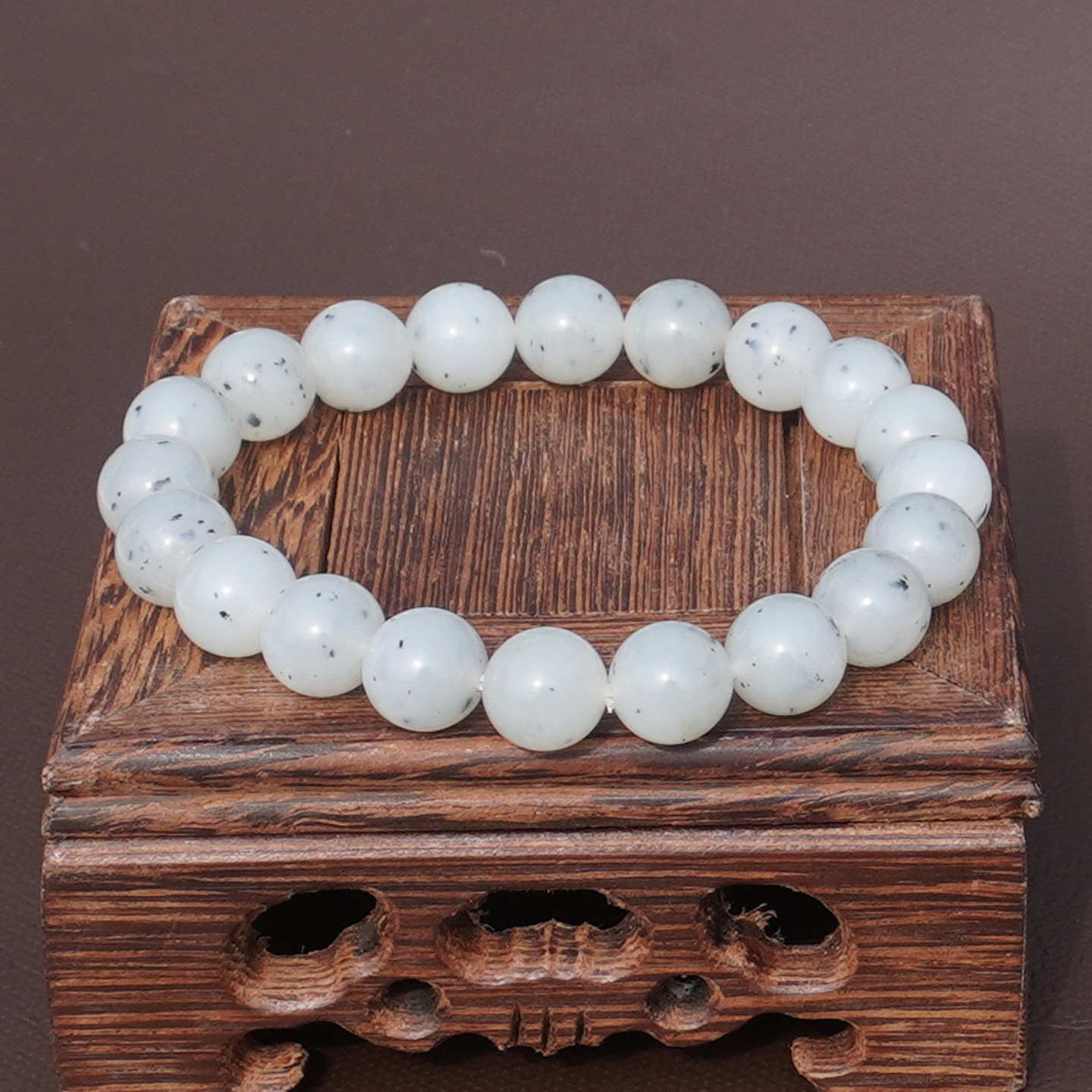 📚 方言和田玉特色新疆玉龙河羊脂玉底点墨青花籽料10mm男女款手串A6