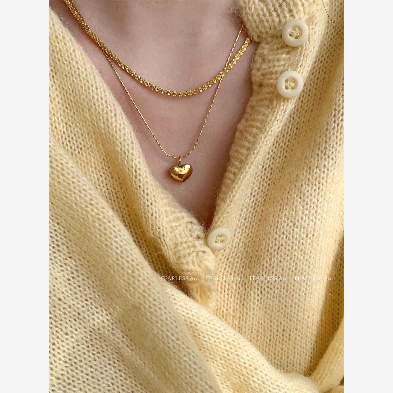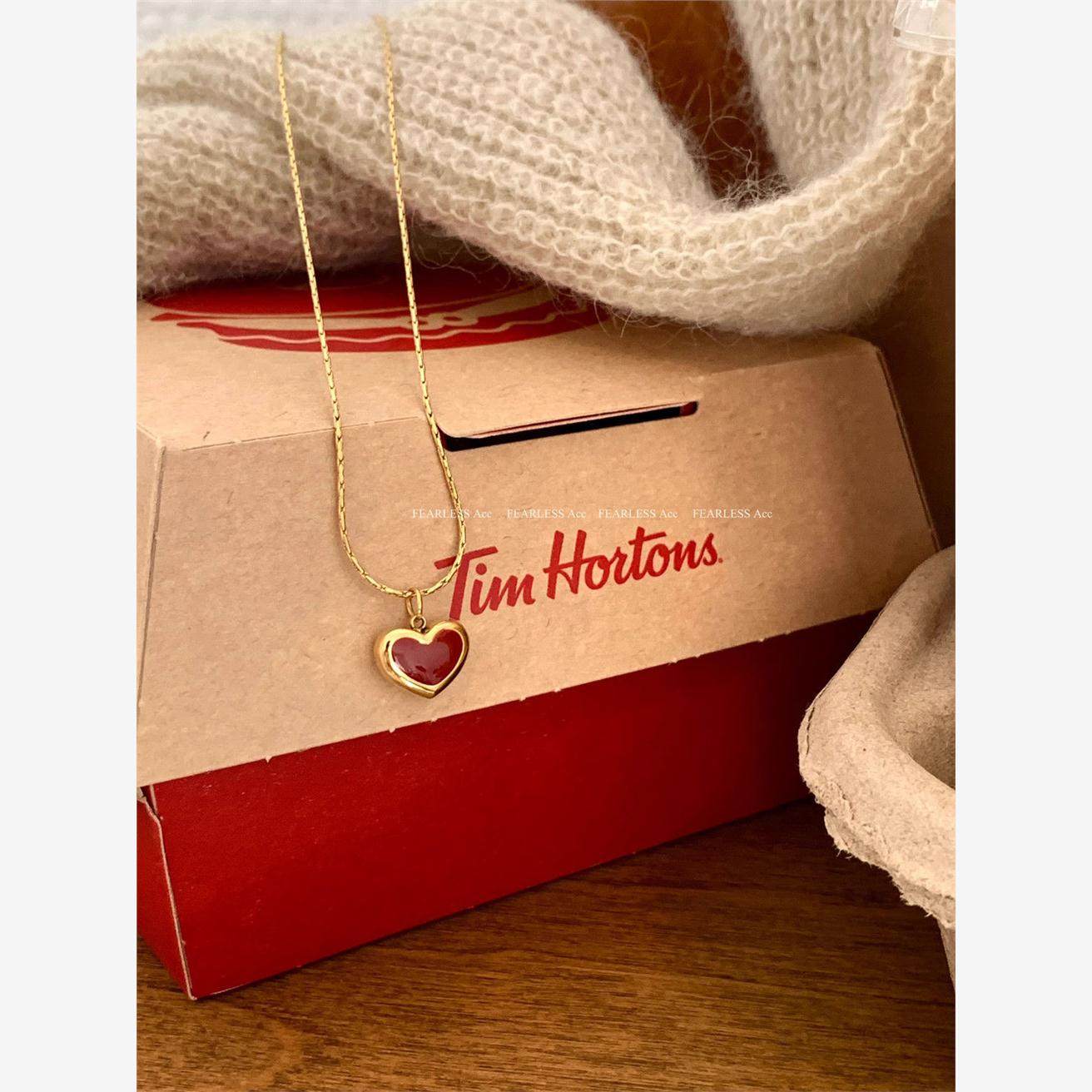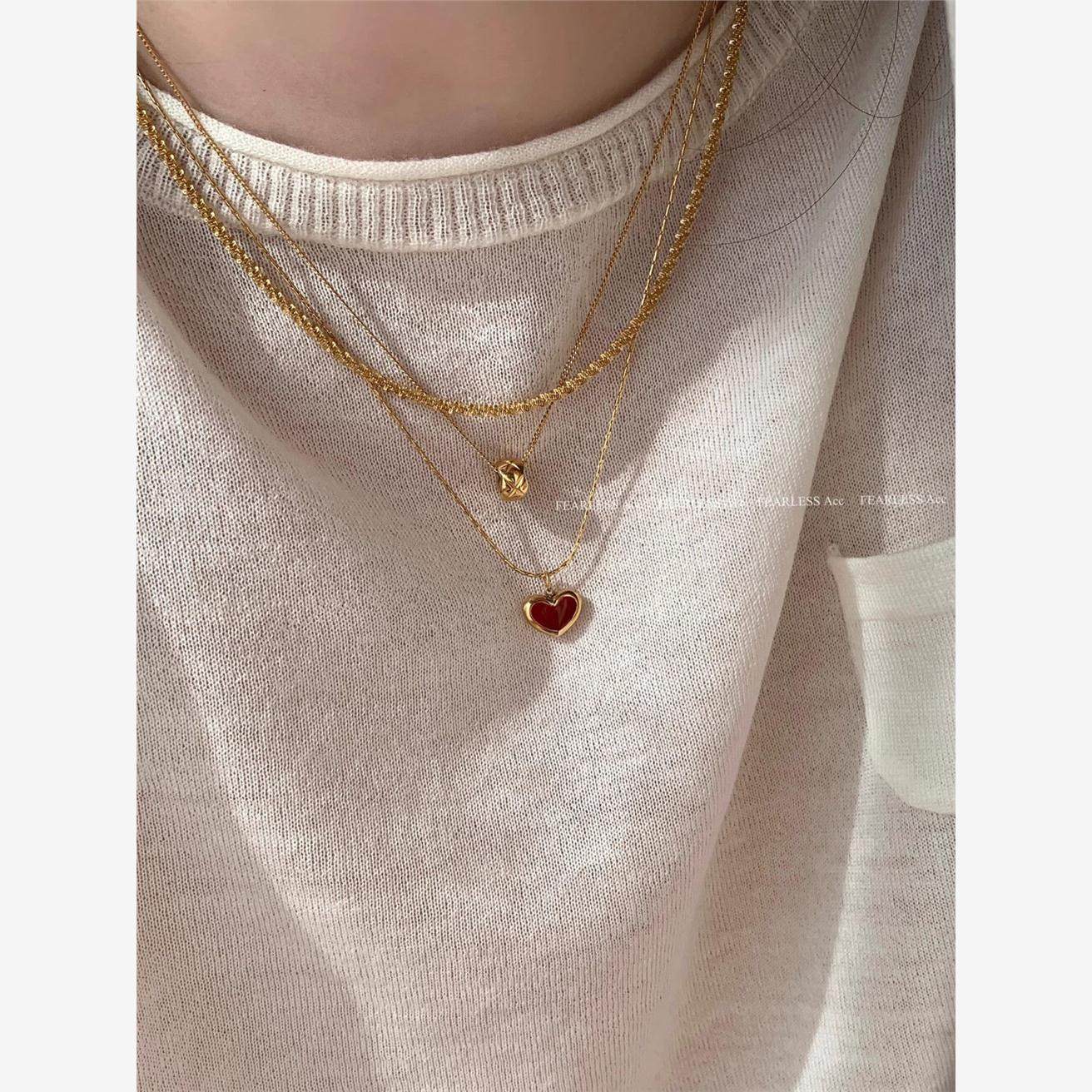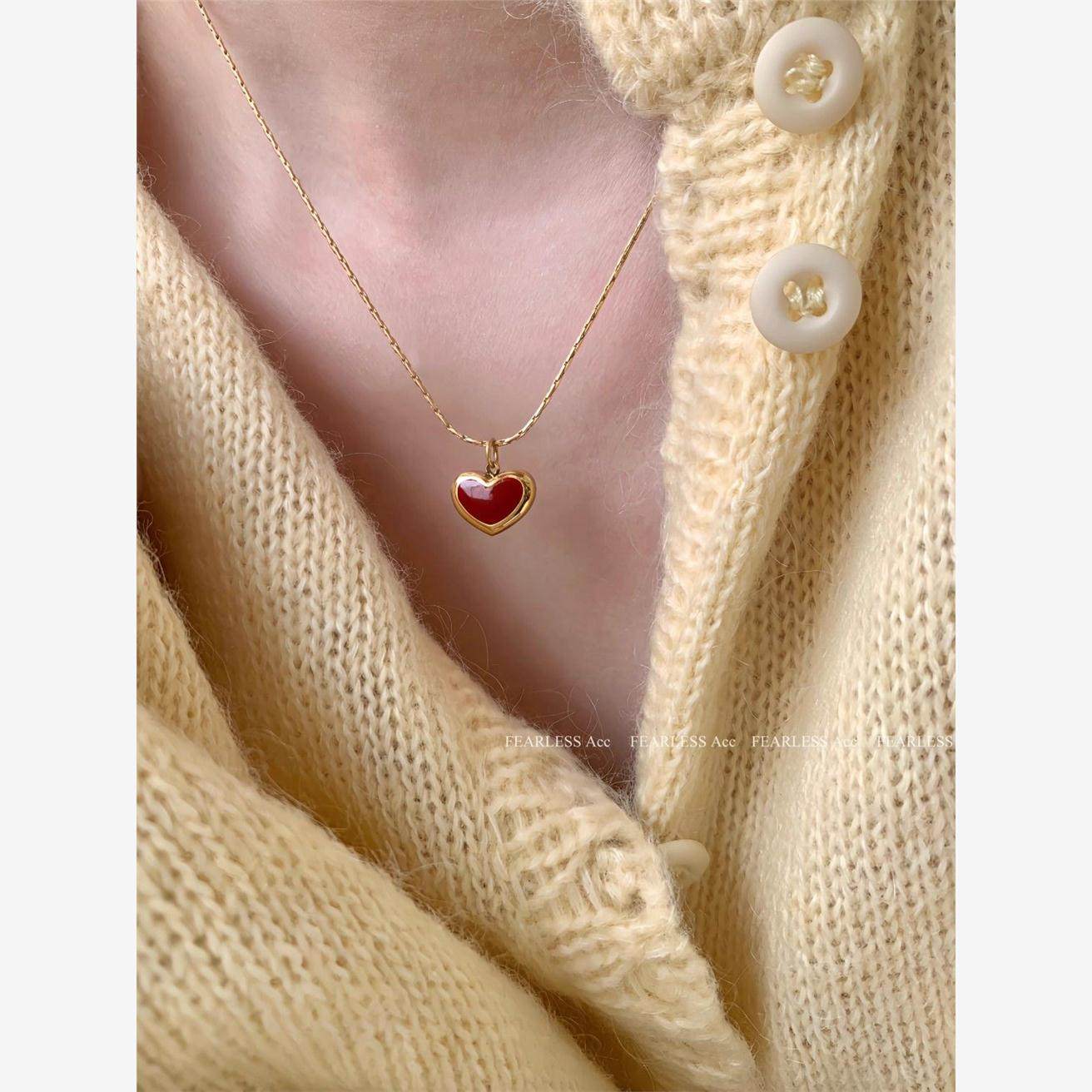 📚 FEARLESS 红色爱心钛钢项链女气质高级感小红心锁骨链桃心吊坠女